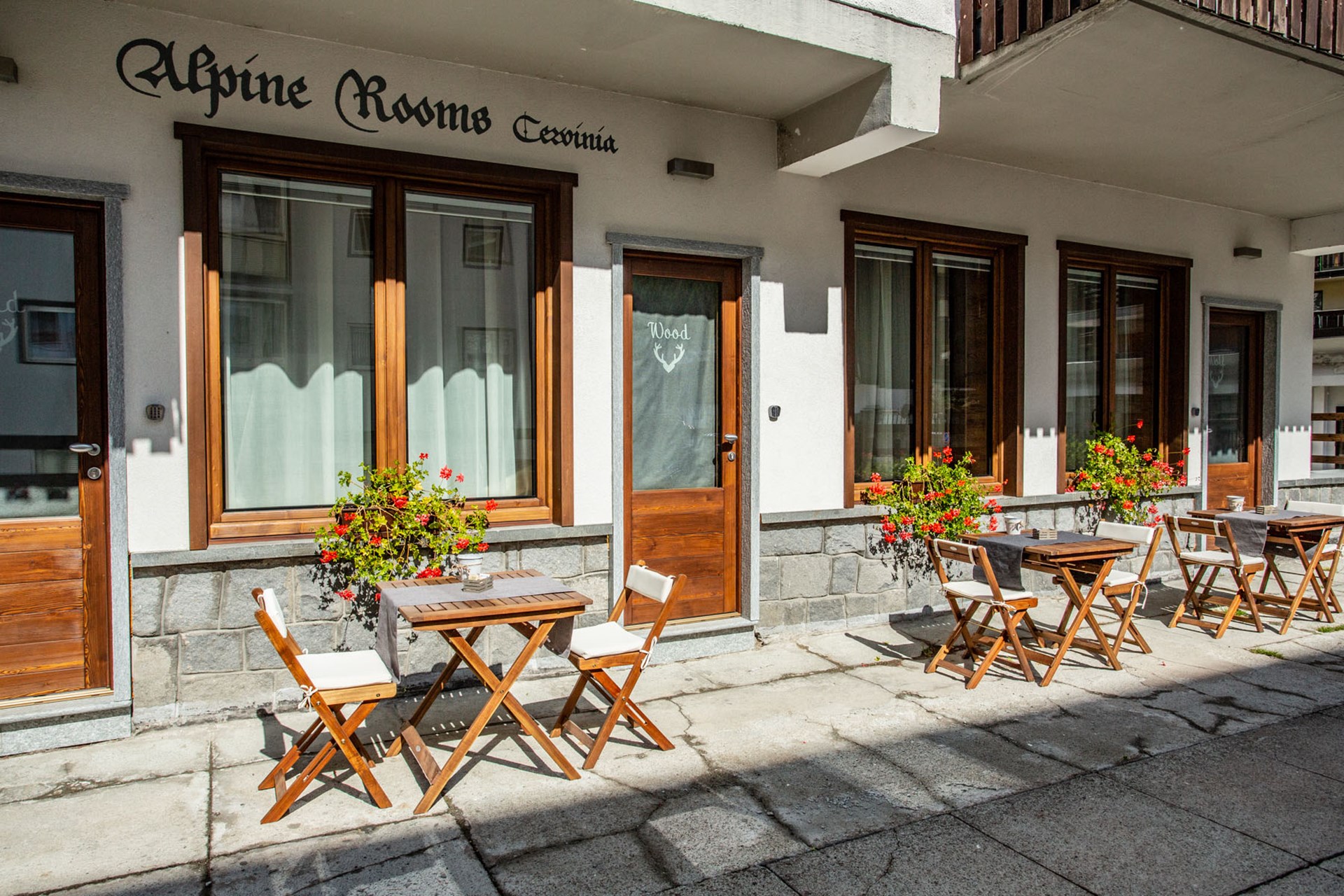 Alpine Rooms Alpine Rooms Cervinia Guesthouse is located at the foot of the Matterhorn, on a small, quiet private road. Just opposite the rooms, only 10 meters away, you will find the central, pedestrian street of Breuil-Cervinia. In the nerve center of the village you can find restaurants, cafes, pizza restaurants (where you can get pizzas by the slice), crêperies, grocery stores, clothing shops of all kinds, ski rentals and ski schools where you can book group courses or private teachers.