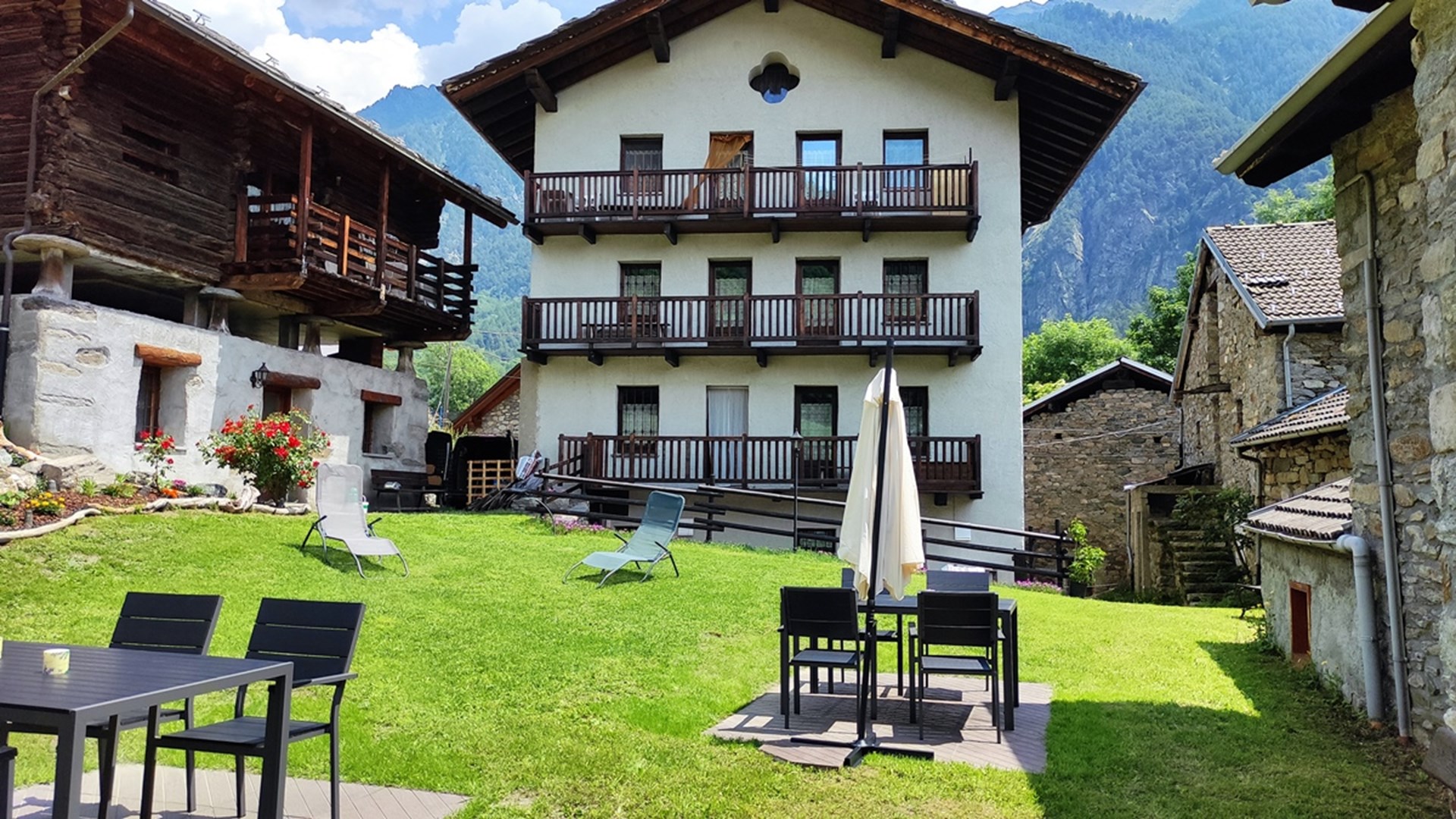 La casa vacanze si trova nella tranquilla frazione di Maé a Challand-Saint-Anselme nella Val d’Ayas ,