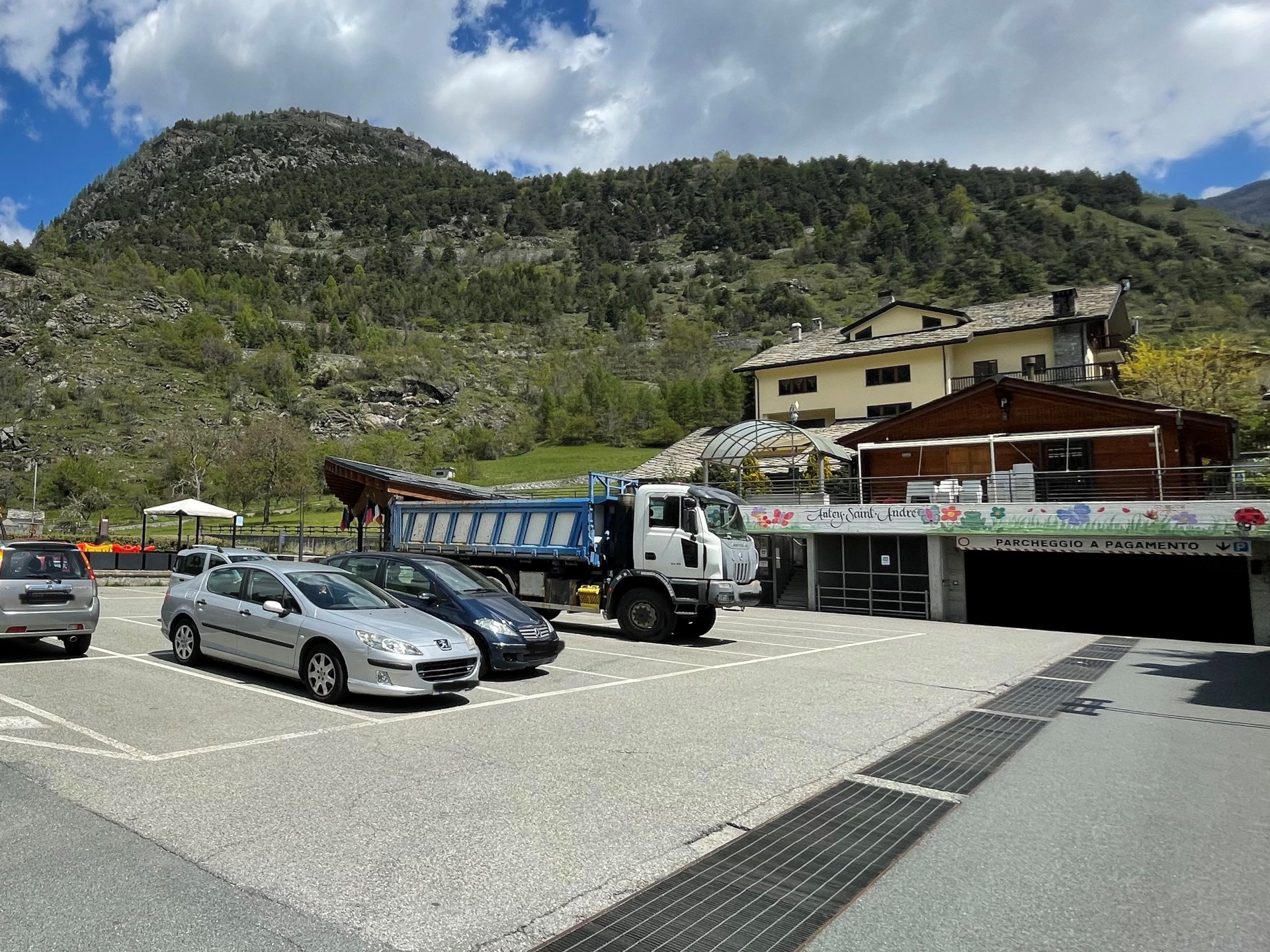 The Bourg car park close to the Church, the Library, the Town Hall and the Medical Clinic.
