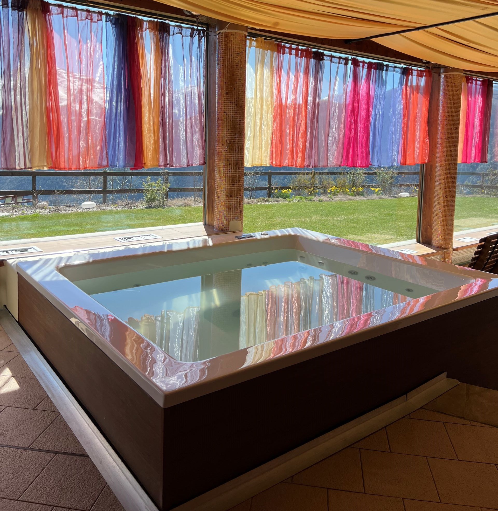 Indoor swimming-pool with jacuzzi, jacuzzi, soft sauna, turkish bath and relaxation room.