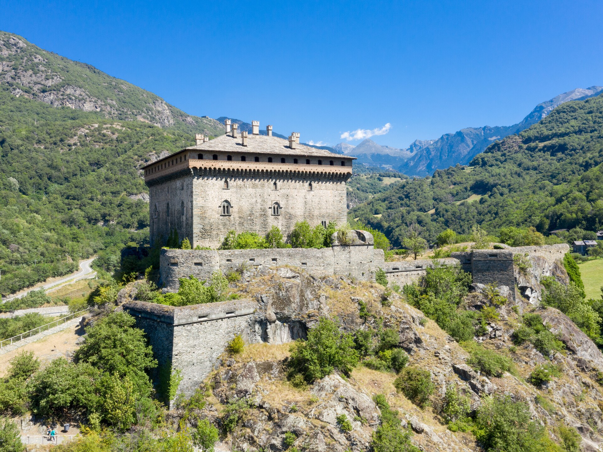 An obligatory stop, before facing the return to Val d’Ayas. You can leave your bike in convenient parking and on foot, in just a few minutes you can reach the top of the Verrès fortress, from where the castle, sober and majestic, dominates the lower central valley. Magnificent example of military architecture, built by the Challands at the end of the 14th century.