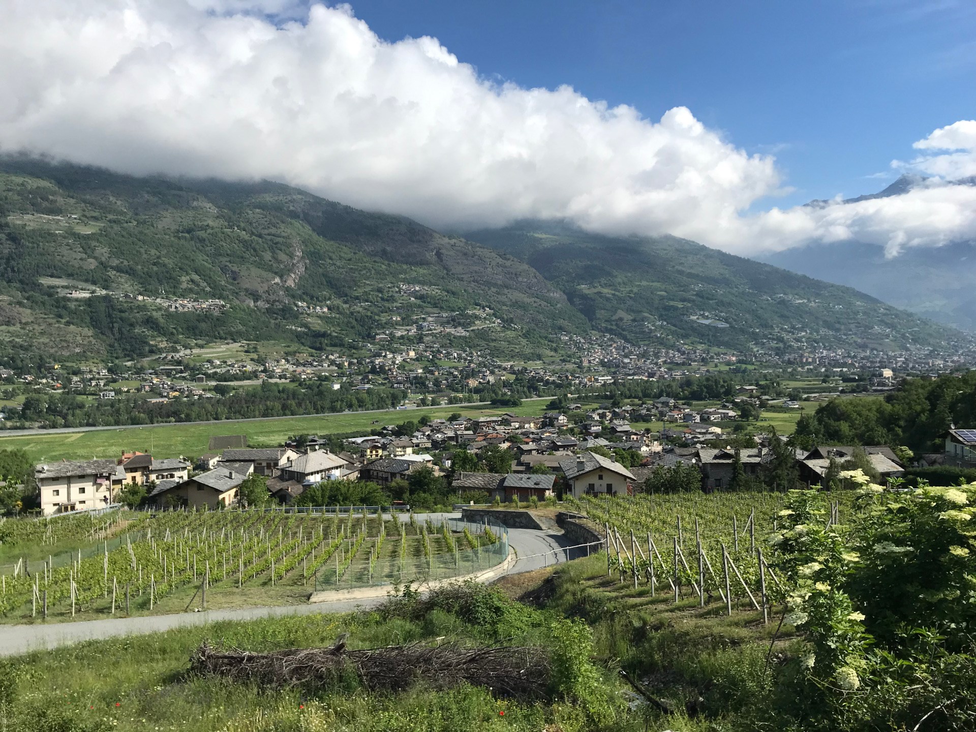 Once you reach the inhabited nucleus of Turille (green house on the right), turn first on the left along the path of the Cammino Balteo and after a few meters on the right (marker Cammino Balteo on a stone) in an area of vineyards. After crossing an asphalted road, continue uphill (trail marker 3B /Cammino Balteo) and enter the wood of wild pine and broadleaf trees until reaching an intersection, follow trail marker 3B and after a few steps there is a panoramic point with benches and tables and with a spectacular view on the mountains . The panel provides some information on the monumental remains of Jovençan that can be seen at the bottom, on the opposite promontory and tells the story of Becca France and the village of Thouraz.