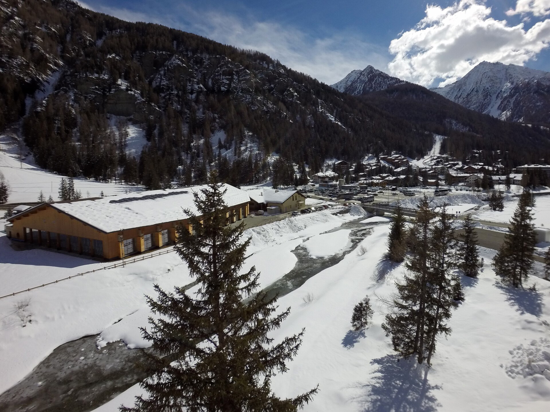The path runs alongside the village of Champoluc and reaches the hamlet of Frachey. The route is wide and flat, illuminated and approximately 3 km long.