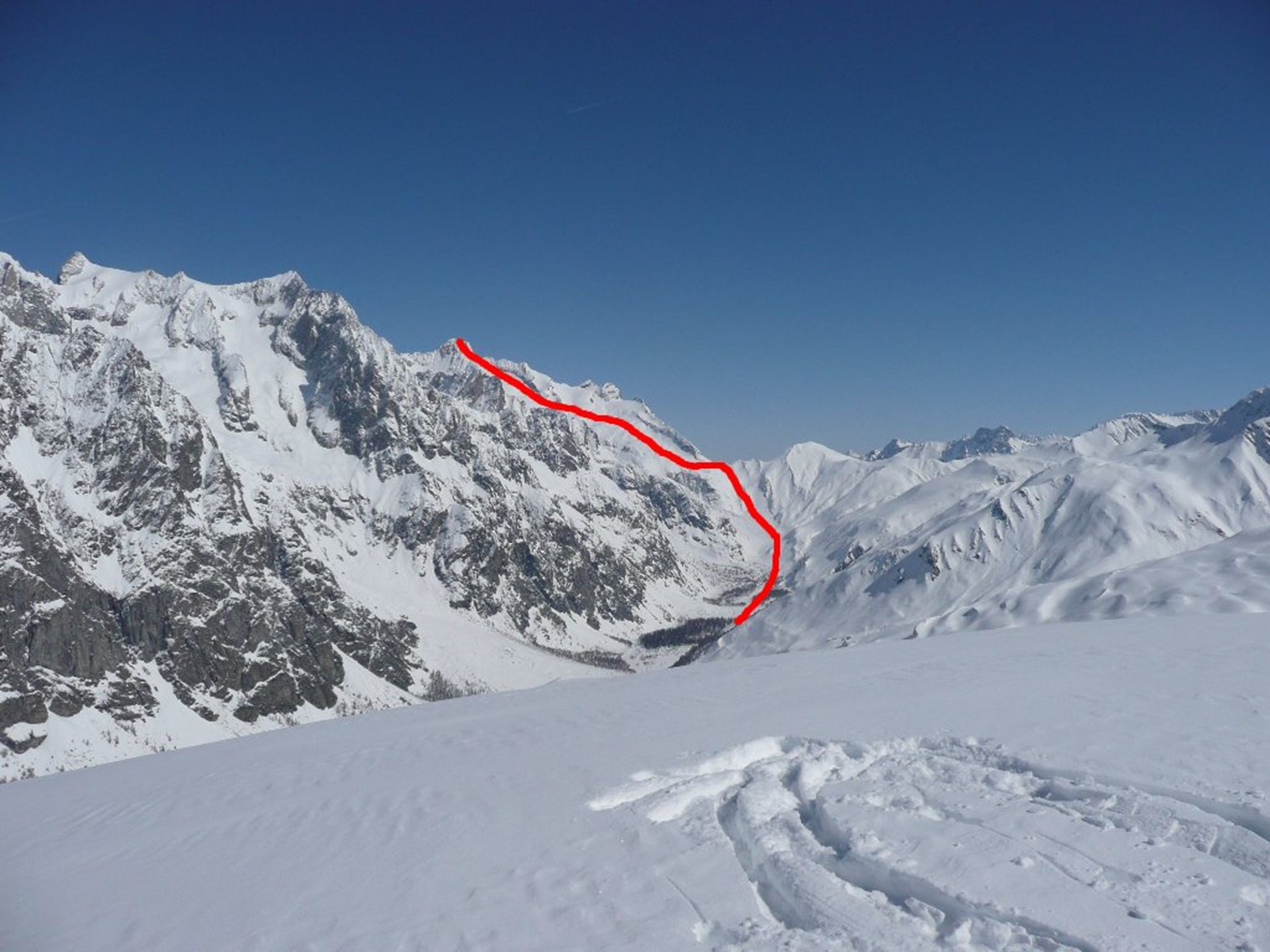 Continue crossing to the glacier and climb to your left, careful of crevasses. Climb to the last steep slope, remove your skis and climb towards the ridge with crampons to the summit.