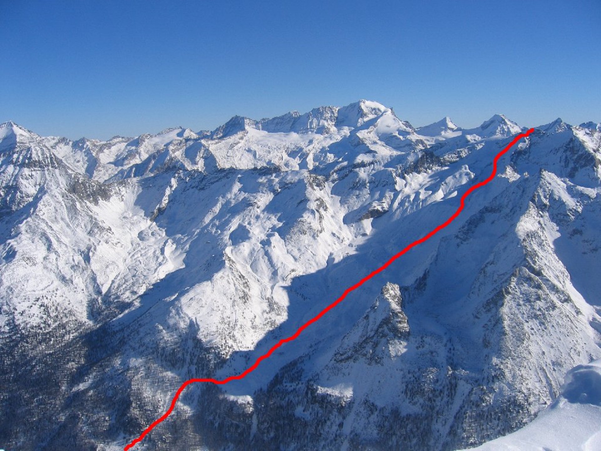 Cross the inhabited area and the Dora di Rhêmes from the car park and head up through the meadows on the right bank in the direction of two isolated houses; carry on up on your right following the trail of the summer pathway. Leave the clearly visible Cucco Castle (2007 m) on your left and, with one last steep crossing to the right, you will come to the entrance of the Entrelor Valley. Climb up the centre then head over to the right and, with a steeper stretch enter a trough on the left. Go back up the valley, then head over to the left and you will come to the glacier. A slope on the right will take you directly to the hillock just to the left of the summit. In the event of unpredictable snow, it is advisable to head up to the left, moving towards the watershed with the Valsavarenche and coming to the lower summit.