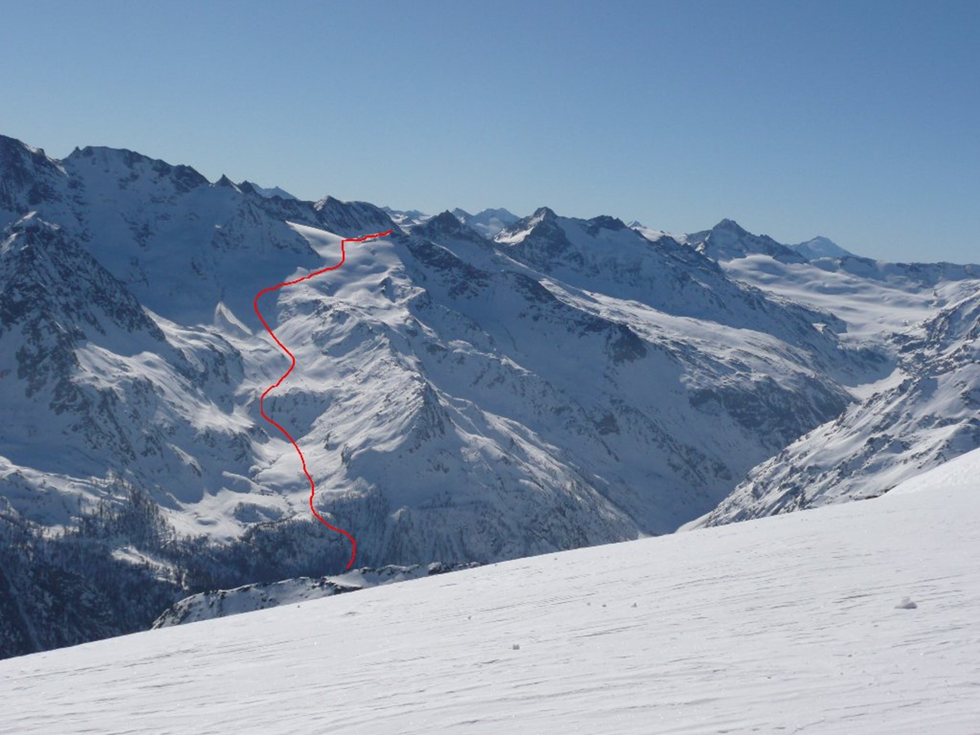 Head up the slopes on the east from Usellière, pass close to the Arolla mountain pasture and immerse yourself in the forest still heading eastwards. The slopes become increasingly steep; head round a rocky crag on the right and you will come to the attractive plains up above. Leave the mountain pasture of Mont Forciaz on your left and carry on following the basin valley. Pass by a clearly visible moraine on your right and head up in the direction of a vast pass (in the second part of the itinerary, it is on the glacier). From here along a short, steeper stretch you will come to the vast peak dorsal.