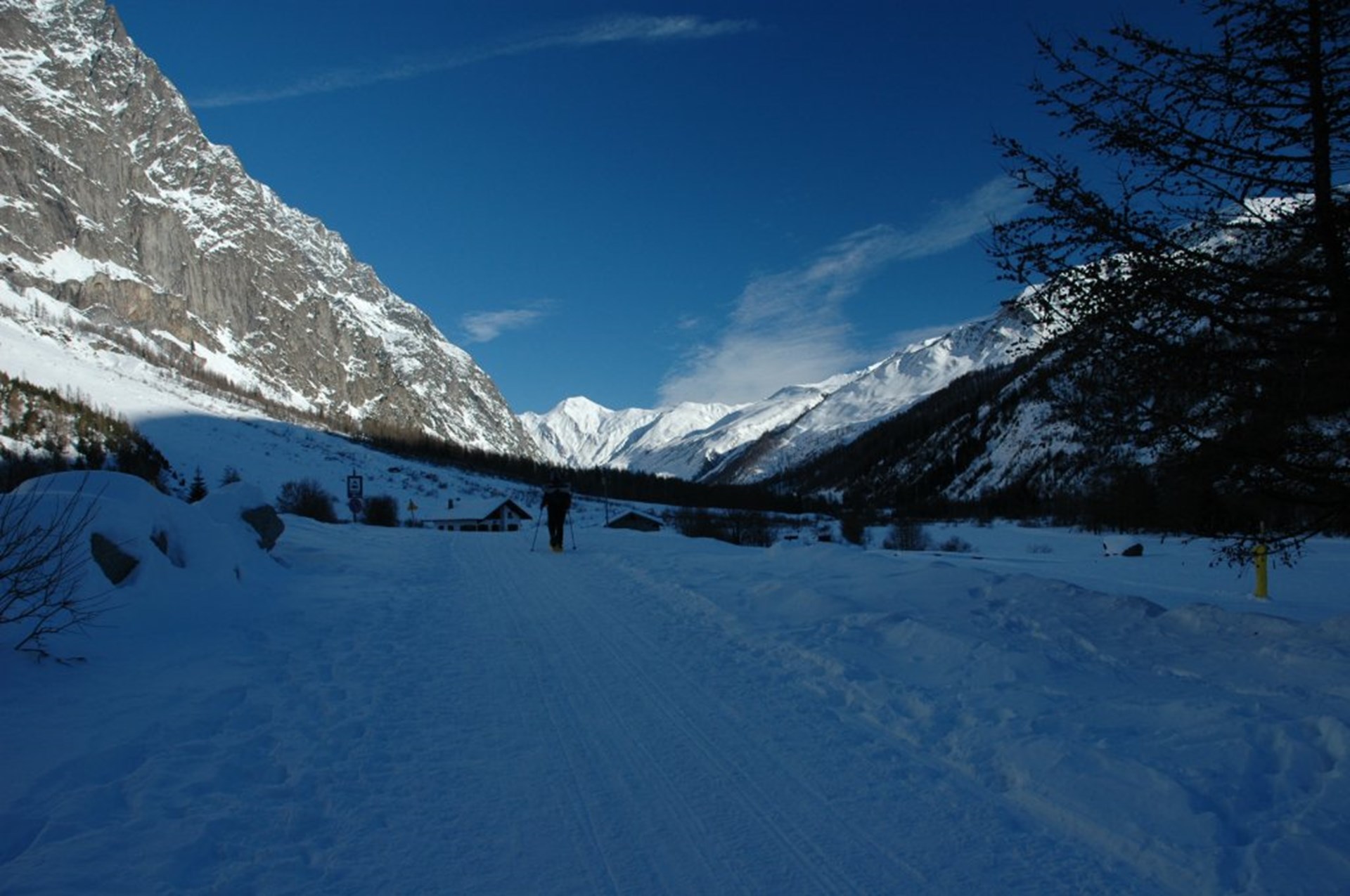 From Planpincieux, head towards the start of the Val Ferret cross-country ski track. Take the path next to the slopes and enter the valley. Initially walk along the edge of the Grandes Jorasses camp site for ten minutes until you reach a small chapel: from here, the route flattens out a bit entering the valley with a great view of Tête de Ferret. Slightly ascending, you’ll first pass Pont, Tronchey and Praz Sec d’en Bas. After the last houses, the path hugs the Doire de Ferret and finally reaches Lavachey.