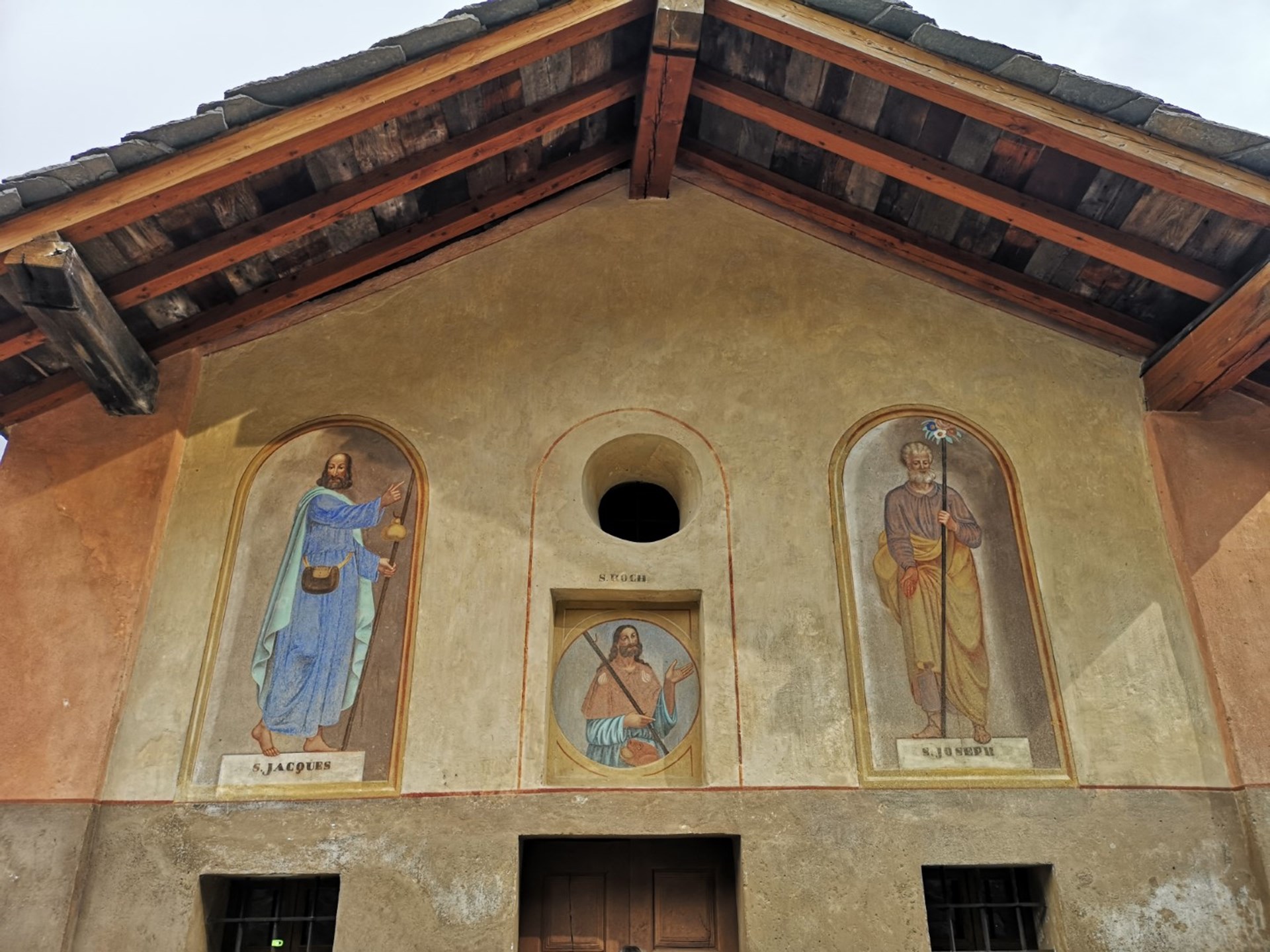 In the main village of Perloz, this 17th century chapel is dedicated to San Rocco who, in artistic iconography, usually presents the shell and pilgrim’s stick as distinctive elements and is thus represented in the central fresco on the facade.