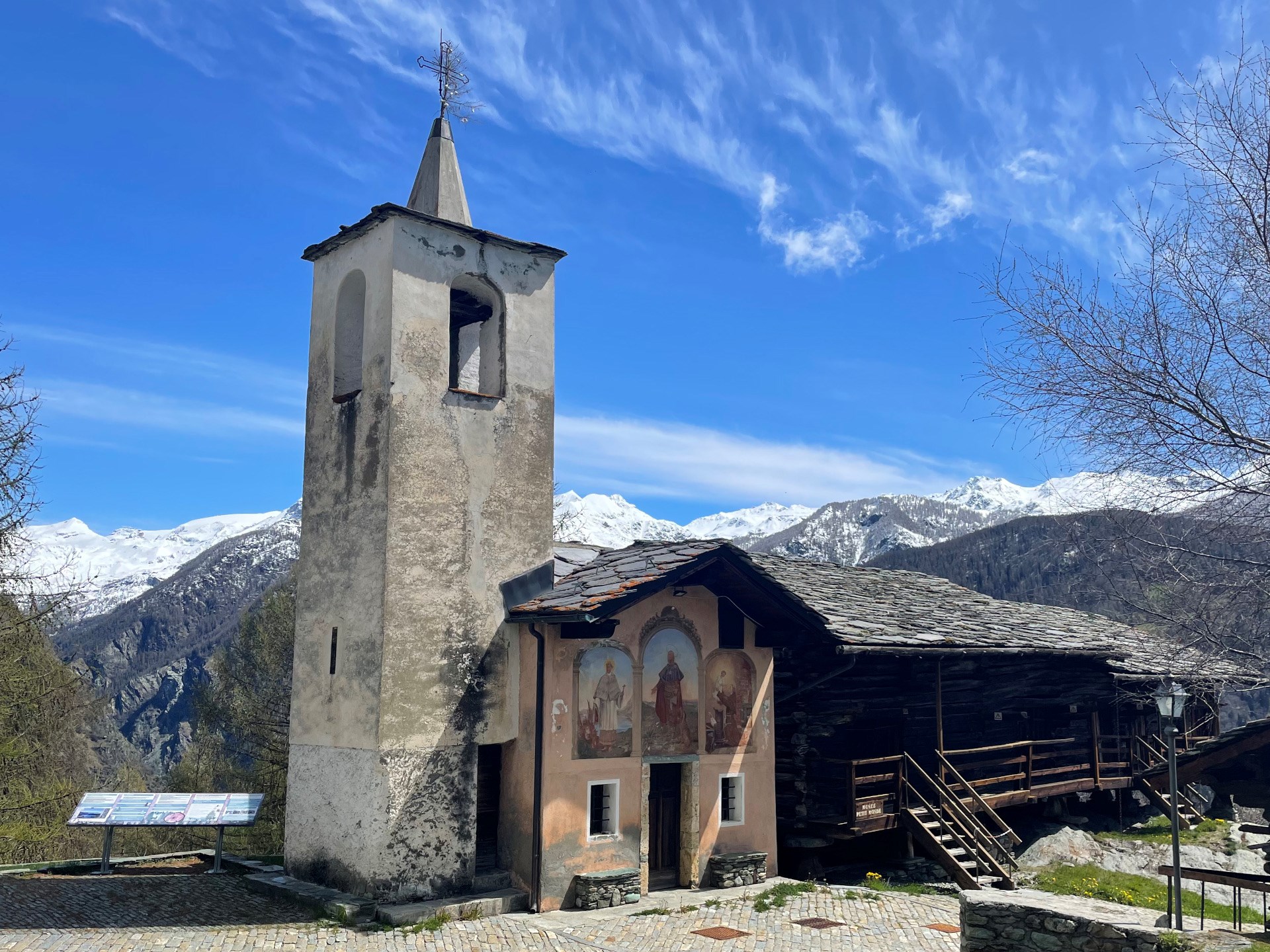 The chapel of Triatel, nestled in the stillness of the village bearing the same name, retains an aura of mystery that fascinates anyone approaching it. Its origins are lost in time: there are records of it as early as 1588, when it was dedicated to Saint Theodul, although the exact date of construction remains unknown. Today the chapel is dedicated to Saint Roch, protector against epidemics, testifying to the deep popular faith that has always animated the community.