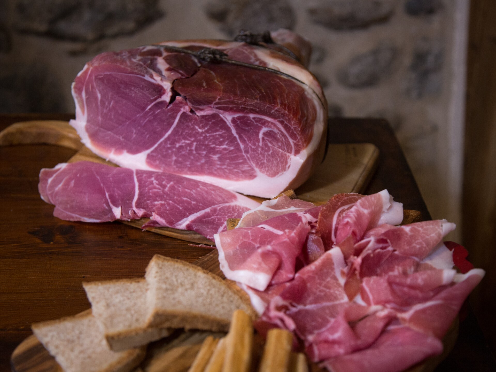 Produced with Italian pork legs, it is salted with a mixture of sea salt and herbs from the Aosta Valley, which enhance its aroma and fragrance. Compact in shape, dark red in colour and with an aromatic and delicately sweet flavour, the ham is aged for at least 12 months at an altitude of 1,600 metres. The secret of its character lies in the territory itself: the particular microclimatic conditions of the Great St Bernard Valley and the purity of the alpine air are essential elements that make this masterpiece of Aosta Valley tradition unique.