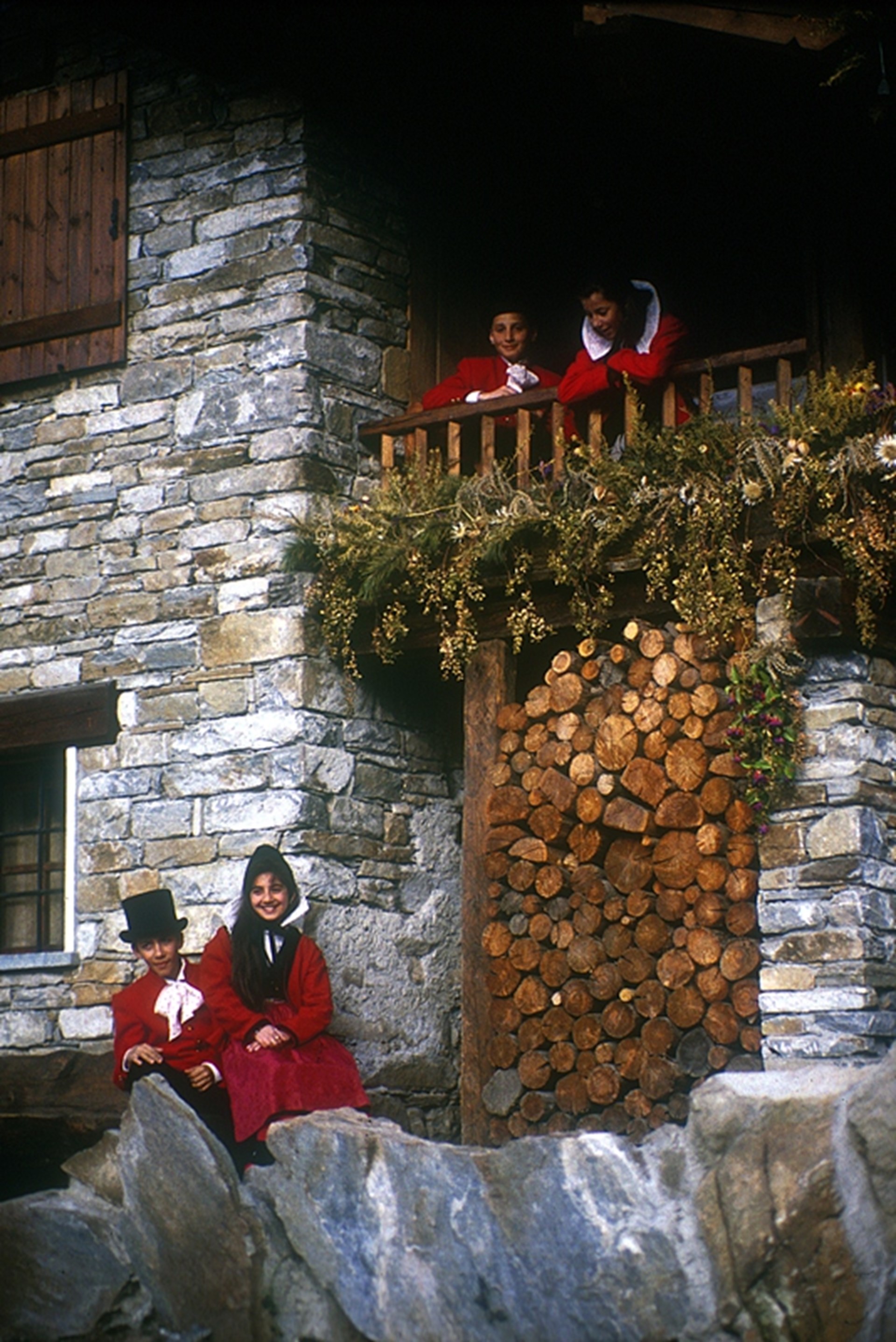 The origins of the costume are very ancient: the men’s elegant costume, in traditional black and red, was influenced by the uniform worn by the napoleonic armies when crossing Aosta Valley. The women’s costume is the one which was worn on festive occasions: heavy hand woven wool, hand-made lace, gaily coloured silk for the aprons and precious jewels. The dances are still those that animated the village weddings and festivals. On these occasions the halberd, a three pointed iron stick with the emblem of Courmayeur on it, is always present: this is the stick on which the women of the group, on their wedding day, hang the coloured ribbon that they wear around their waist.
