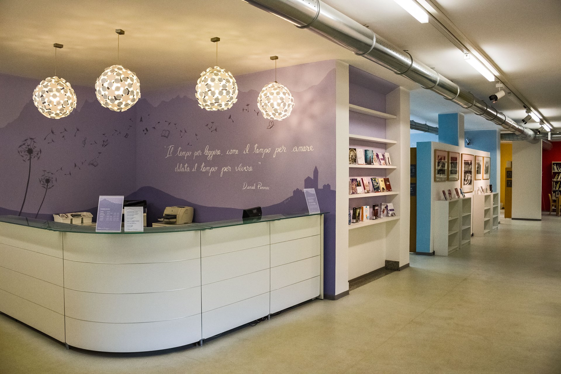 The library is located at 41, Viale Monte Bianco, in the primary school building.