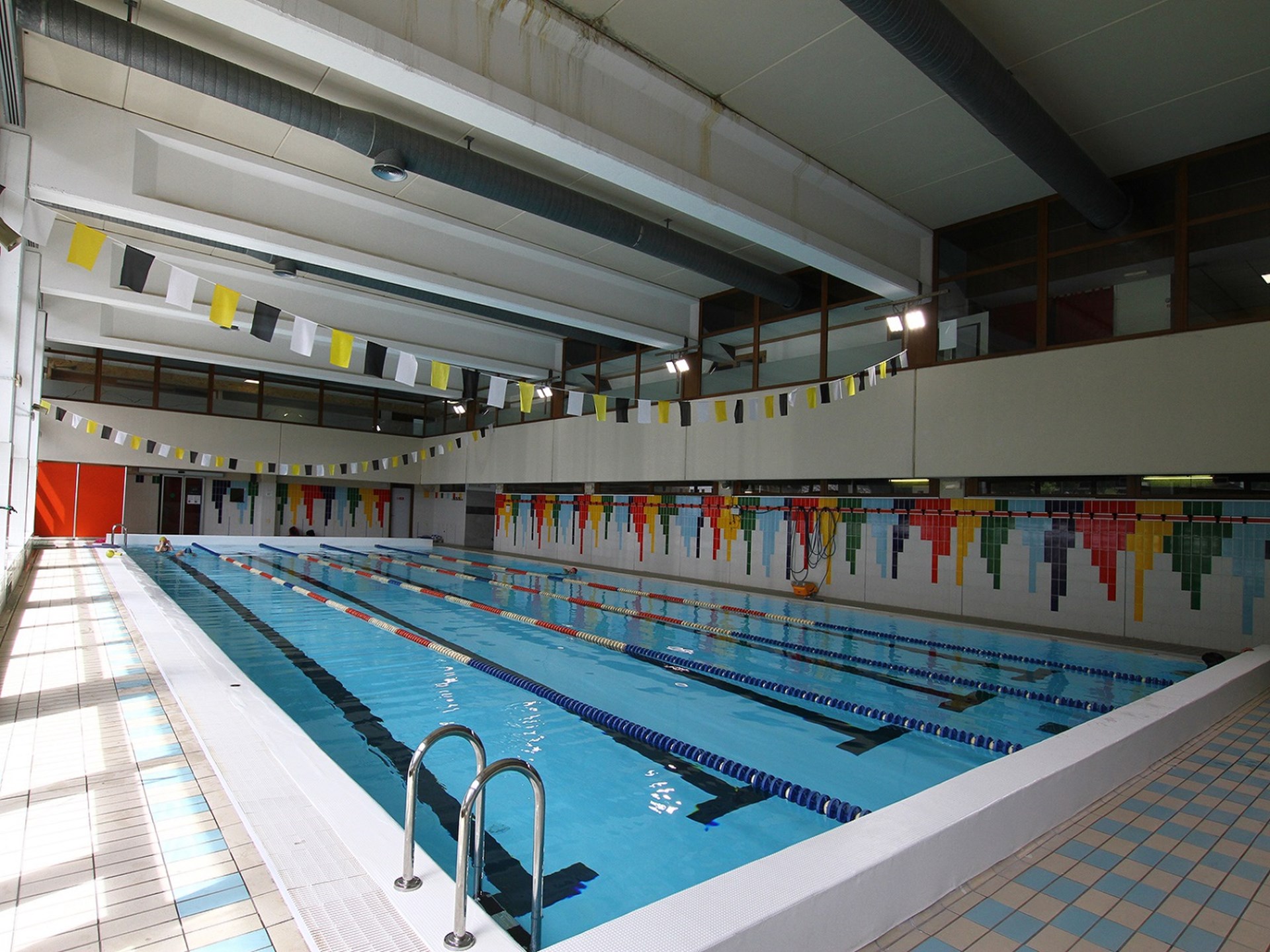 The pool, 25 X 10 meters, is endowed with 5 lanes and has a depth ranging from 120 to 180 centimeters.