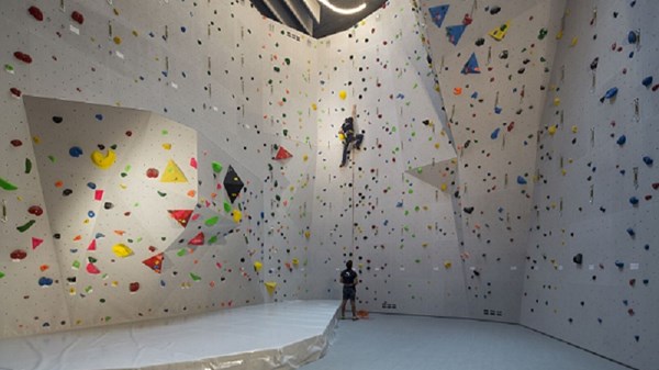 Indoor climbing wall.