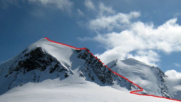 From the Refuge you will come to the valley of the Verra Glacier and head east pointing towards the Castor. Before the Pollux ridge, turn to the left and cross almost horizontally towards Porta Nera. On the left of the rise you’ll see the Rossi-Volante camp that you can reach by climbing the snow-covered slope in front of it. Beyond the camp, climb the small rocky rise from which the final slope starts (snow and easy rocks) that leads to the summit ridge. A short shift to the right leads you to the top.
