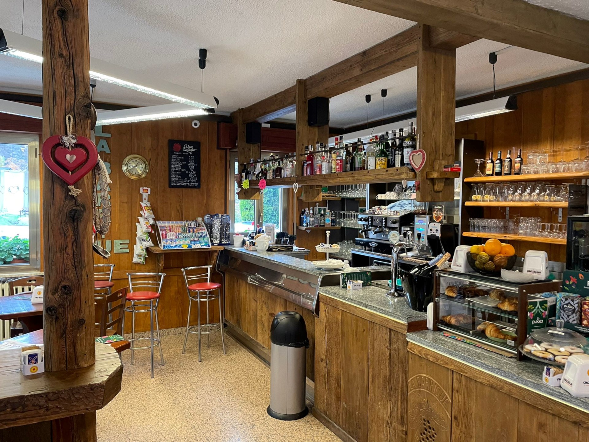 El restaurante bar de vinos ofrece un ambiente acogedor y platos rápidos bien preparados. Amplia selección de vinos del Valle de Aosta y nacionales y muchos tipos de cerveza italiana pero sobre todo belga y alemana, incluidas Alpen Beer y Ganter. Abierto todo el día, sin día de cierre.
