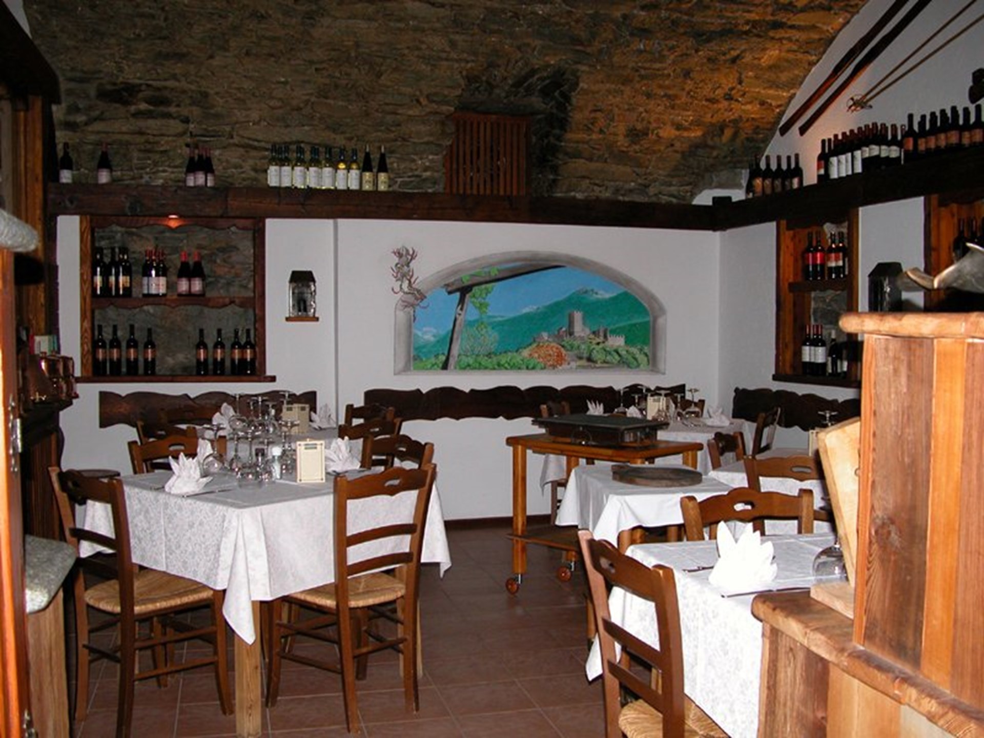 5 mesas en una atmósfera cálida y acogedora, de madera y piedra, con cocina a la vista, en el corazón de Chambave. La cocina se basa en la calidad de la carne y los productos de estación.