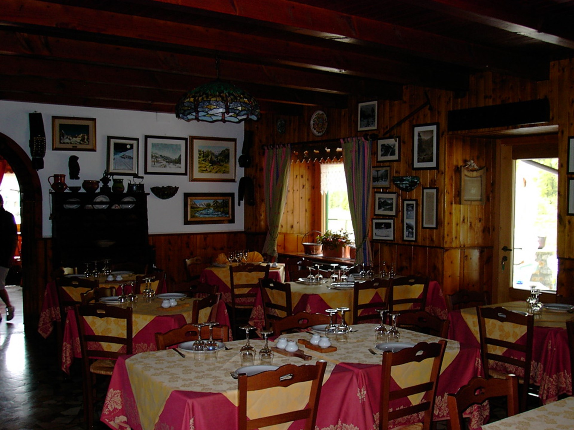 Típico local de montaña, con decoración característica y atmósfera acogedora, y amplia terraza panorámica con espectacular vista al Monte Blanco. La carta propone, principamente, una vasta selección de platos de la tradición culinaria valdostana y una cocina casera.