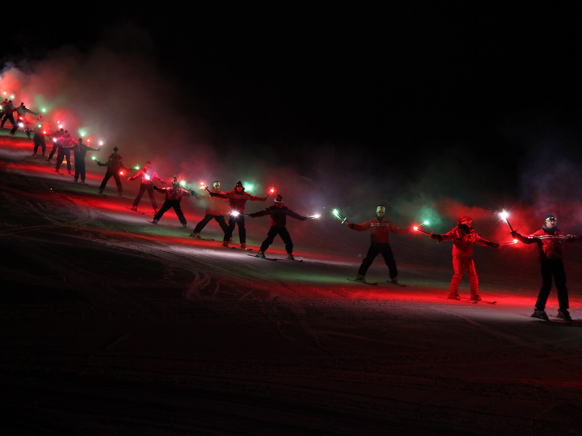 The ski instructors of Champoluc celebrate Carnival with a torchlight vigil on the slopes of Crest… masquerade!