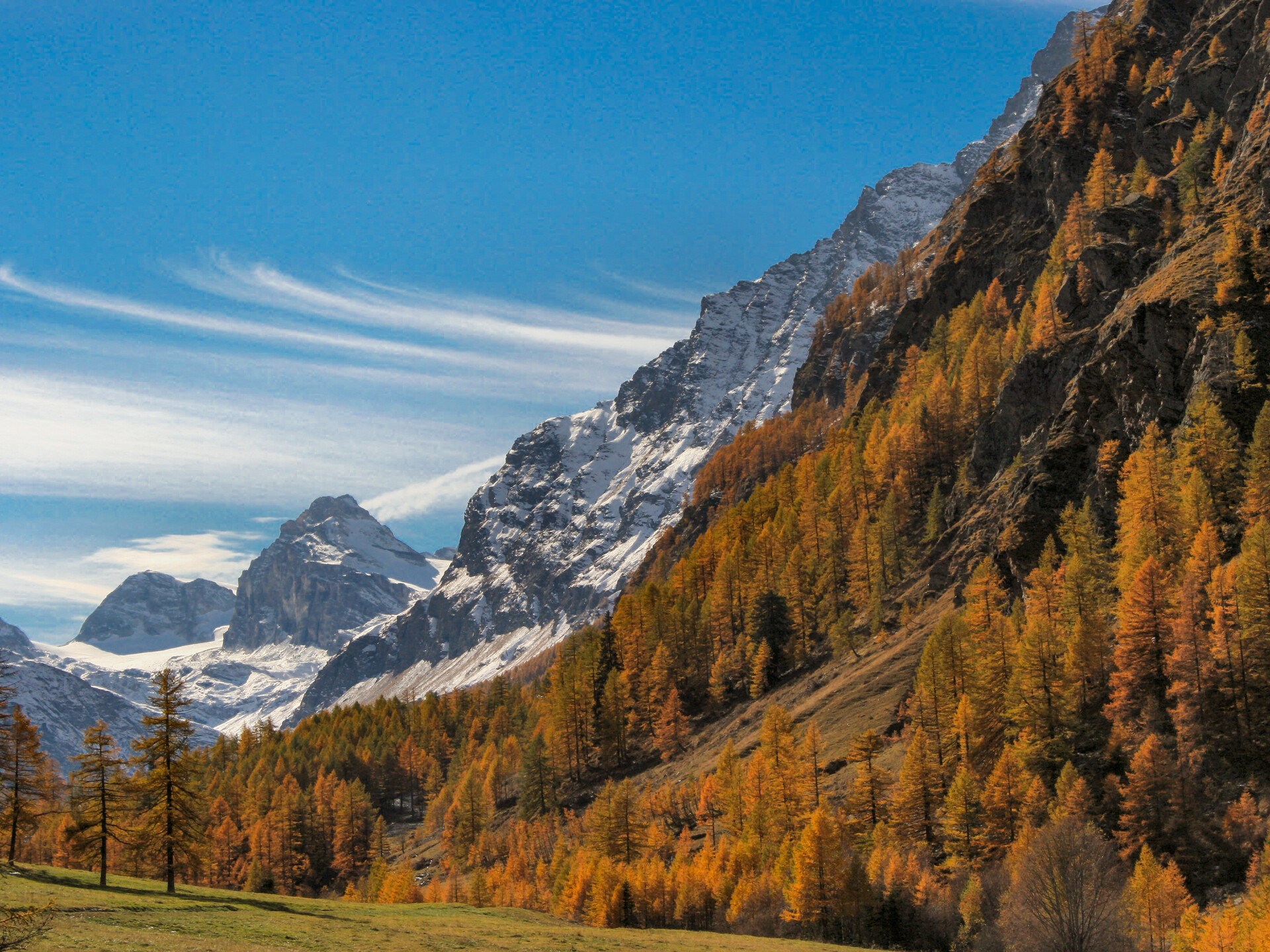 Guided loop hike along the trail to the park ranger's lounge and return to Bruil via the Chaissettaz valley. The larch and Swiss stone pine forests accommodate a dense undergrowth of rhododendrons and loniceras. A panoramic stretch halfway up the mountainside allows a breathtaking view of the entire valley.