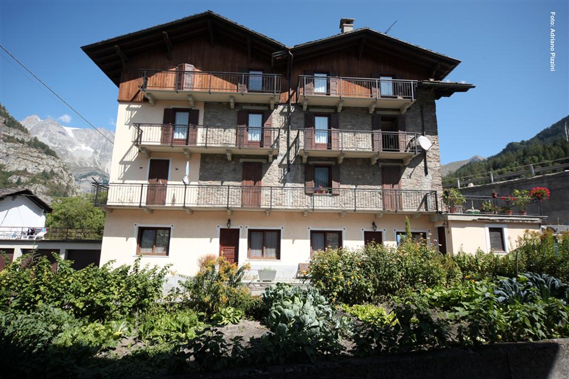 Salida de la autopista de Courmayeur. <br>De la salida de la autopista, proseguir hasta la rotonda. Una vez allí, girar a la derecha y seguir hasta Piazzale Monte Bianco, donde se halla el alquiler de habitaciones.