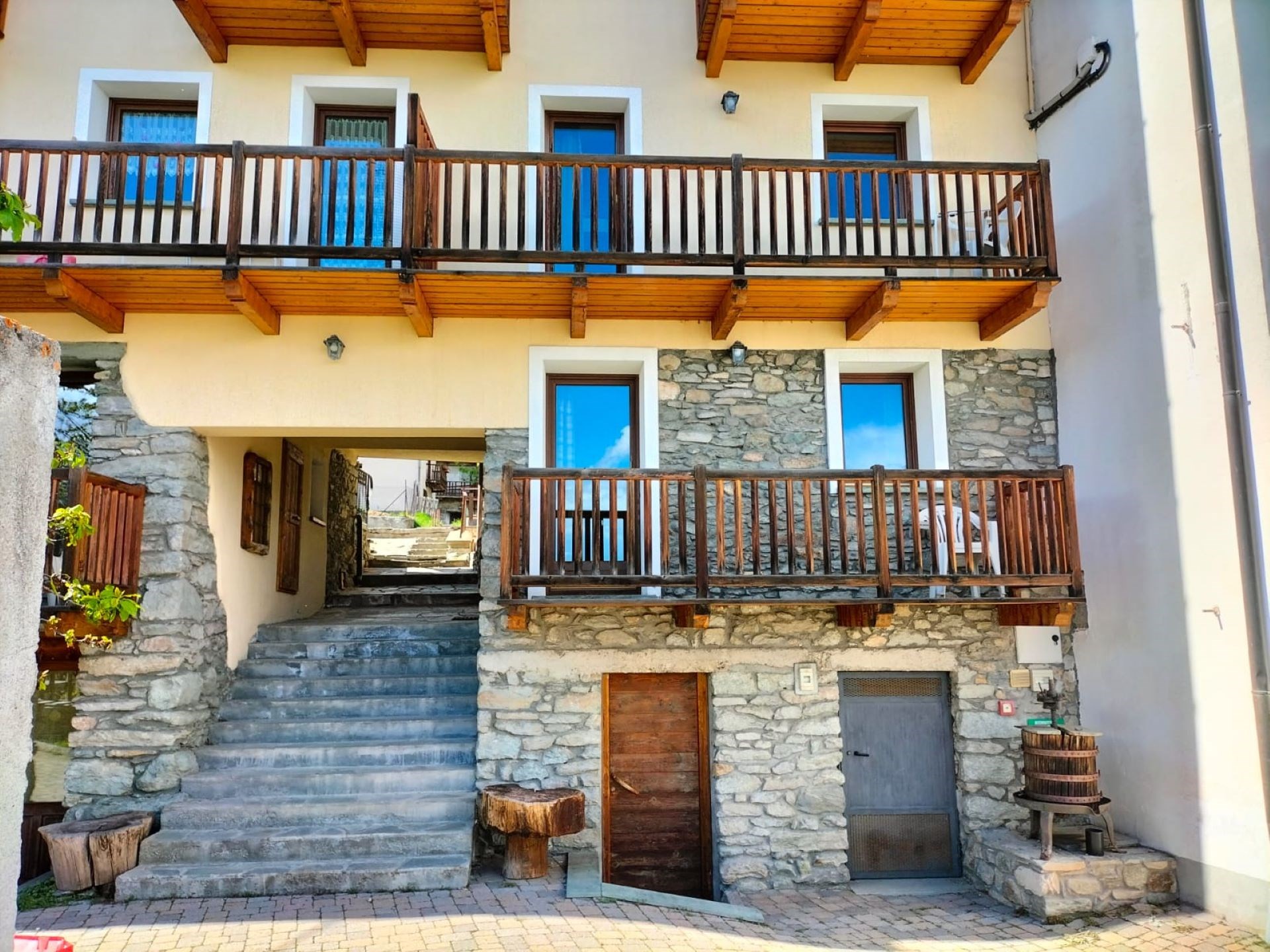 En el centro histórico del pueblo, dentro de un característico edificio de piedra, hay tres apartamentos: uno de tres habitaciones y dos de dos habitaciones, ideales para disfrutar de una estancia tranquila y auténtica en la montaña.