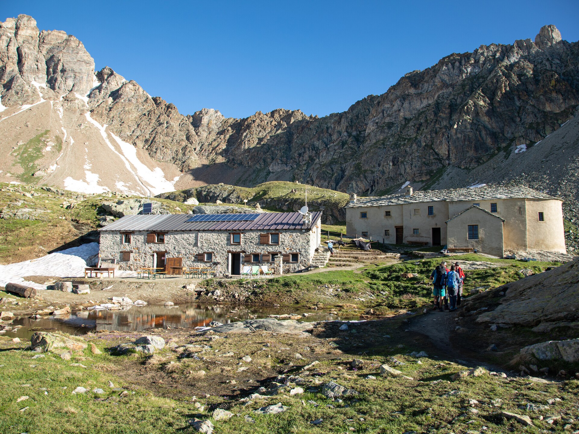 El que fuera en tiempos establo para convertirse, poco después, en refugio de peregrinos, lleva recibiendo desde su remota apertura a los excursionistas que valoran la cuenca destinada a pasto a los pies del Pico del Merlo y su proximidad a los lagos de Cuney, a la Punta Fontaney y al monte Morion.