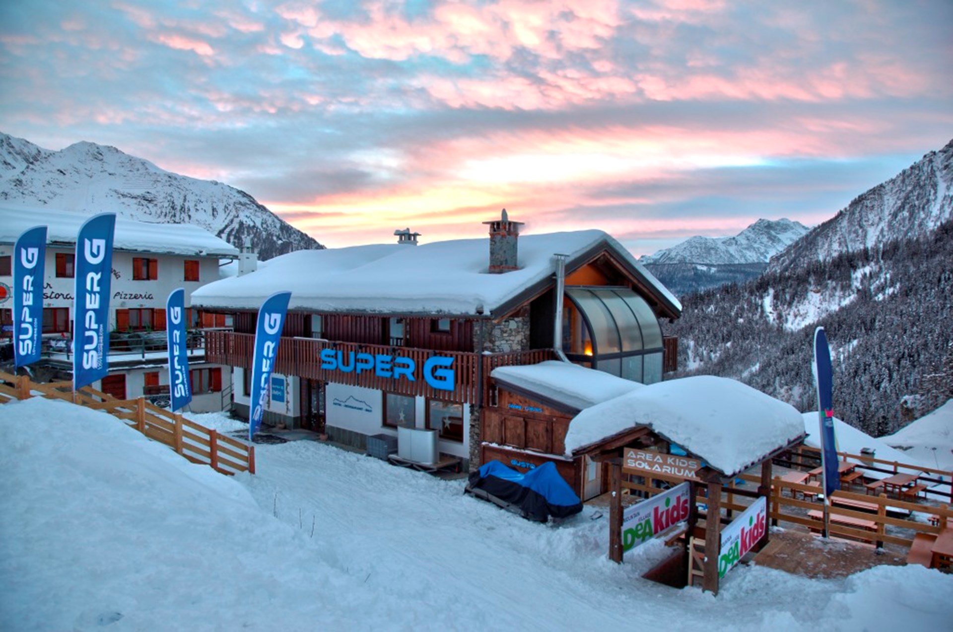 El SuperG es el único hotel situado en la hermosa meseta panorámica de Plan Checrouit (1704 m) sobre Courmayeur, justo en medio de las pistas de esquí. Un edificio reciente de estilo típico de montaña con unas vistas inmejorables: macizo del Mont Blanc y laderas nevadas. Las habitaciones tienen una vista privilegiada de la zona de Courmayeur y el Mont Blanc. El restaurante sirve cocina nacional y especialidades regionales.
