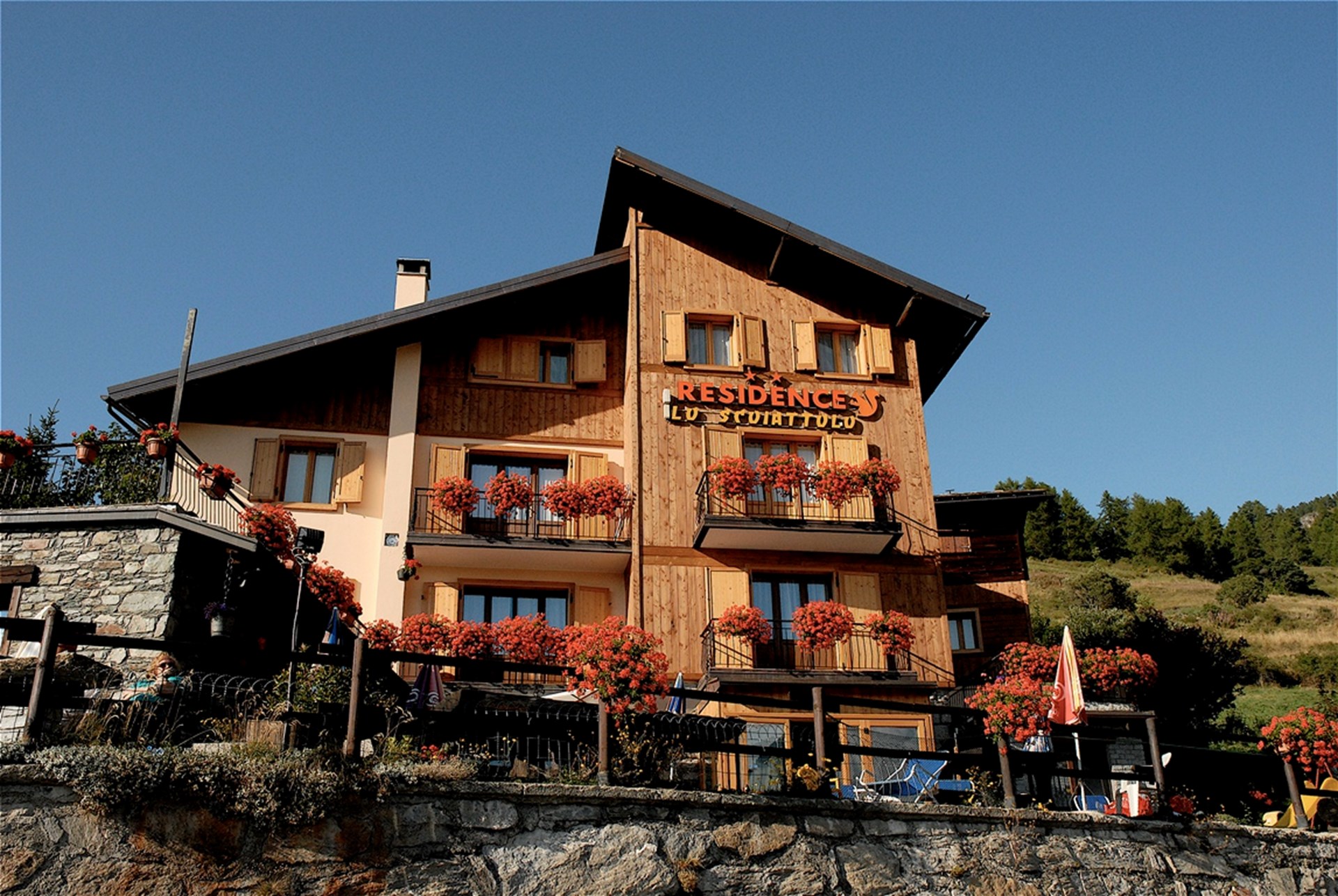 Lo scoiattolo, residence y trattoria característico inmerso en las montañas de la Magdeleine, les espera para unas vacaciones bajo el lema de la tranquilidad y el deporte, con alojamiento en coquetos apartamentos, y para degustar los platos de la cocina tradicional del Valle de Aosta.