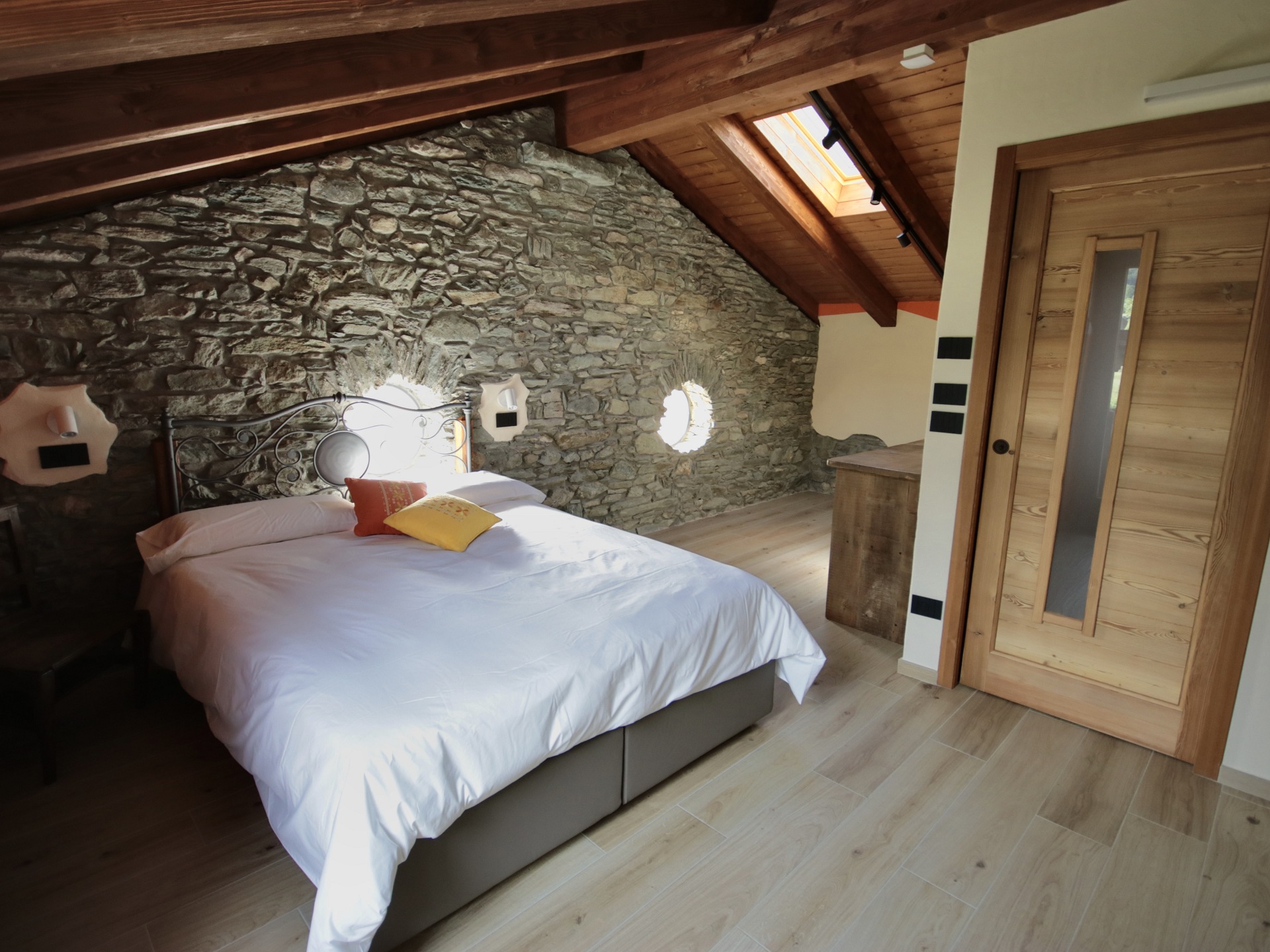 El edificio completamente renovado combina la autenticidad del Valle de Aosta con las comodidades contemporáneas en un ambiente familiar, acogedor y bien cuidado.
