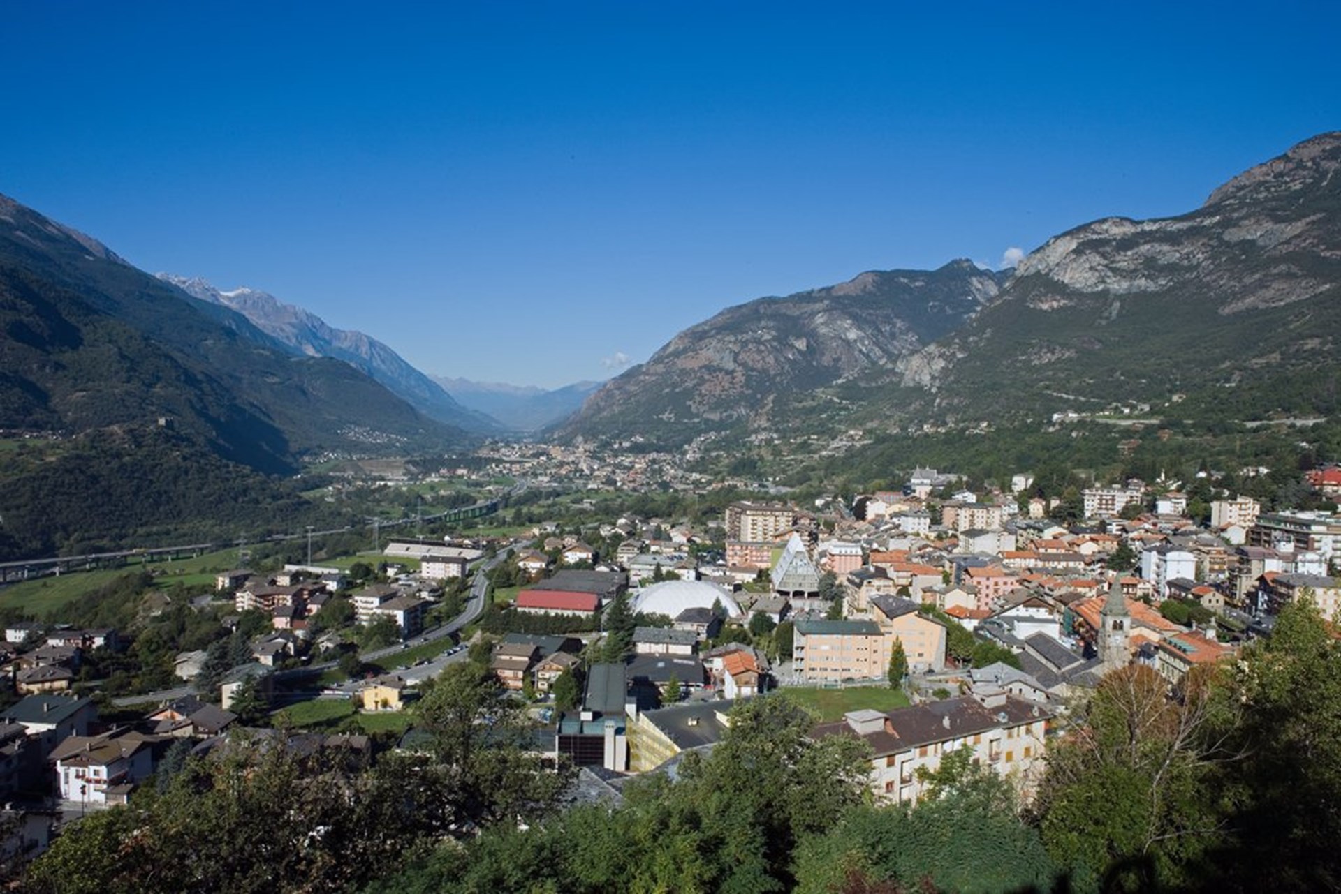 Situada en una cuenca resguardada de los vientos, Saint-Vincent disfruta de valiosos testimonios del pasado. Desde 1947, Saint-Vincent es famosa por su Casino, uno de los pocos autorizados en Italia. En verano, se pude subir al monte de Joux por una de las carreteras con mejores panorámicas de la región, donde las vistas se extienden por el valle central. Desde aquí, se desciende por la ladera opuesta hasta Brusson, para continuar después hasta el fondo del valle, pasando junto a los pueblos de Challand-Saint-Anselme y Challand-Saint-Victor. Justo tras este último, se ve ya Verrès, dominada por un imponente castillo construido en la segunda mitad del siglo XIV. Continuando hacia Aosta, a poca distancia de Verrès, se encuentra Champdepraz, que acoge el Parque Natural del Mont Avic, único parque regional del Valle de Aosta. A continuación, se pasa por el antiguo pueblo de Montjovet, situado estratégicamente a lo largo de la vía romana de las Galias, dominado por el castillo de Saint-Germain, del siglo XI, del que aún se pueden ver una hermosa torre y algunos restos de la muralla exterior.
