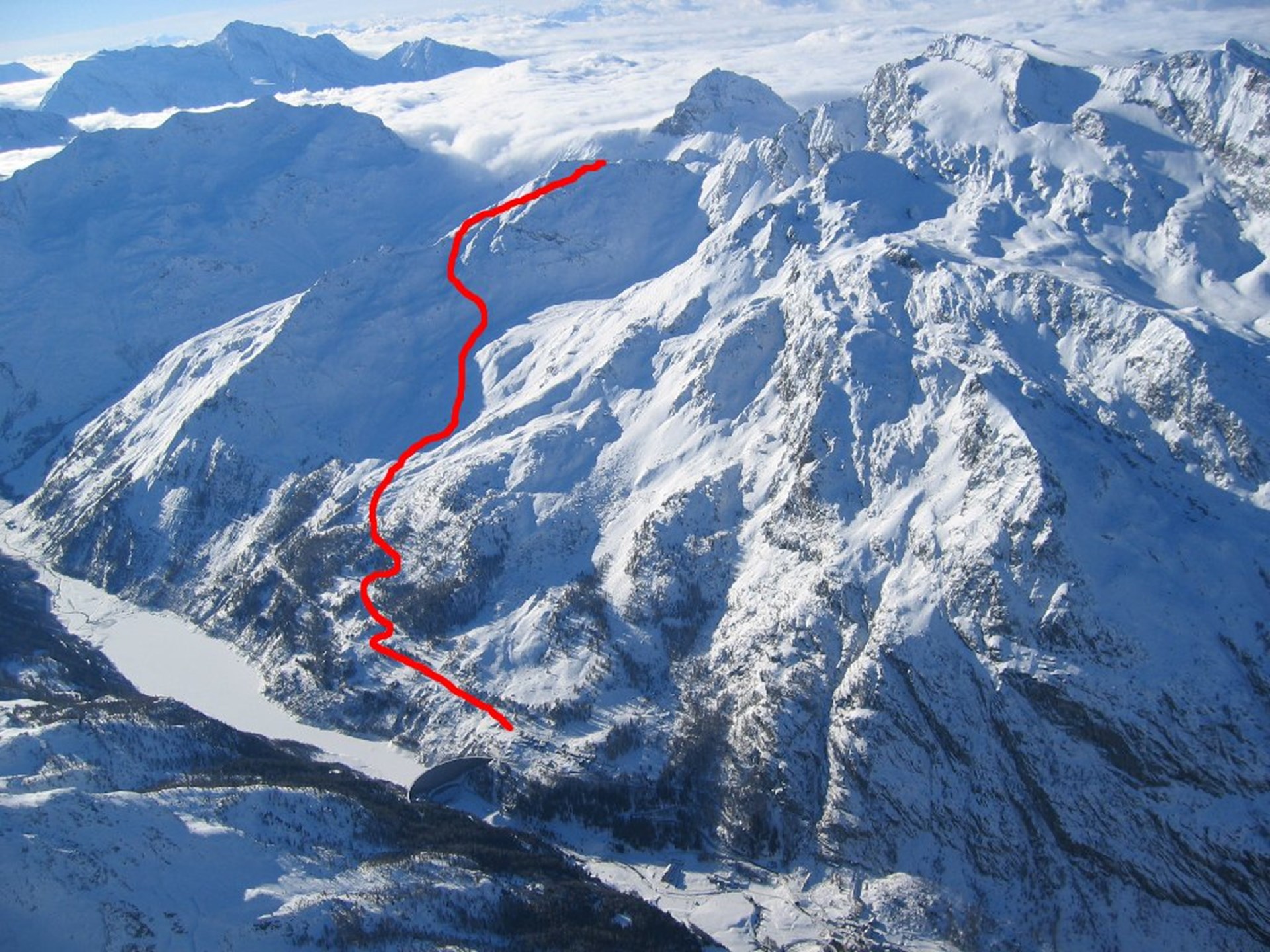 Aparcar el coche poco después de la pedanía de Bonne, continuar por la carretera en dirección al fondo del valle y después tomar la carretera rural que se dirige a Arp Vieille, a la derecha. Girar a la derecha en la primera bifurcación. Dejar atrás los Alpi Meillares y después dejar a la derecha el Alpe Vieille. Mantenerse a la izquierda y comenzar a subir por las pendientes, que primero son suaves y después más escarpadas, hasta llegar en el collado que está cerca de unas ruinas militares. Continuar remontando las pendientes manteniéndose a la derecha por la ladera este hasta llegar a la cima.