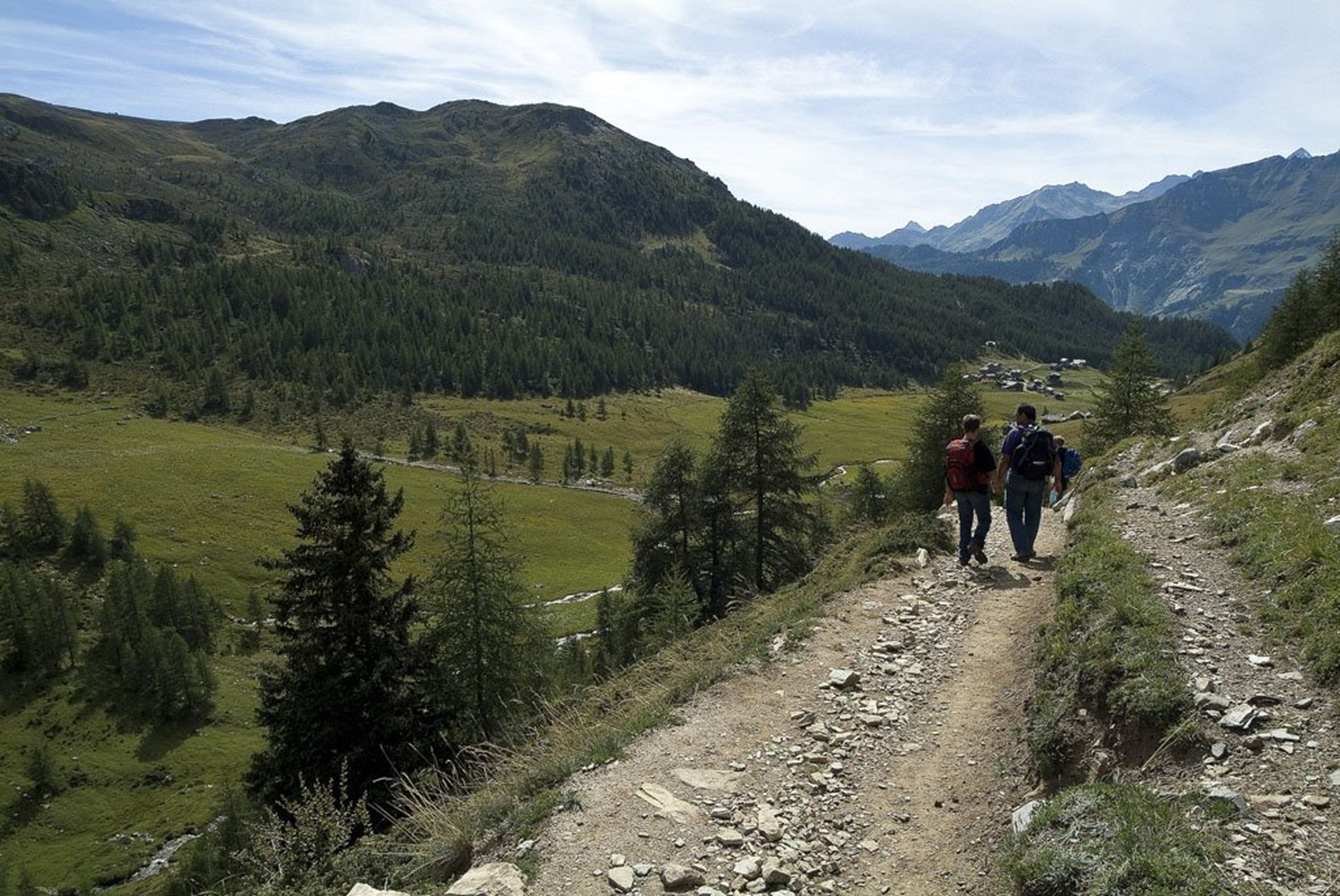 El sendero sube por un espeso bosque de alerces y latifoliadas hasta cruzar con la carretera que comunica Murenche con Falinère, procedente de la izquierda; atravesarla y subir hasta la Alpe Promindot (1.850 m), situada en una planicie herbosa con una destacable vista. Continuar subiendo por el bosque de alerces hasta llegar a la cuenca de Cheneil.
