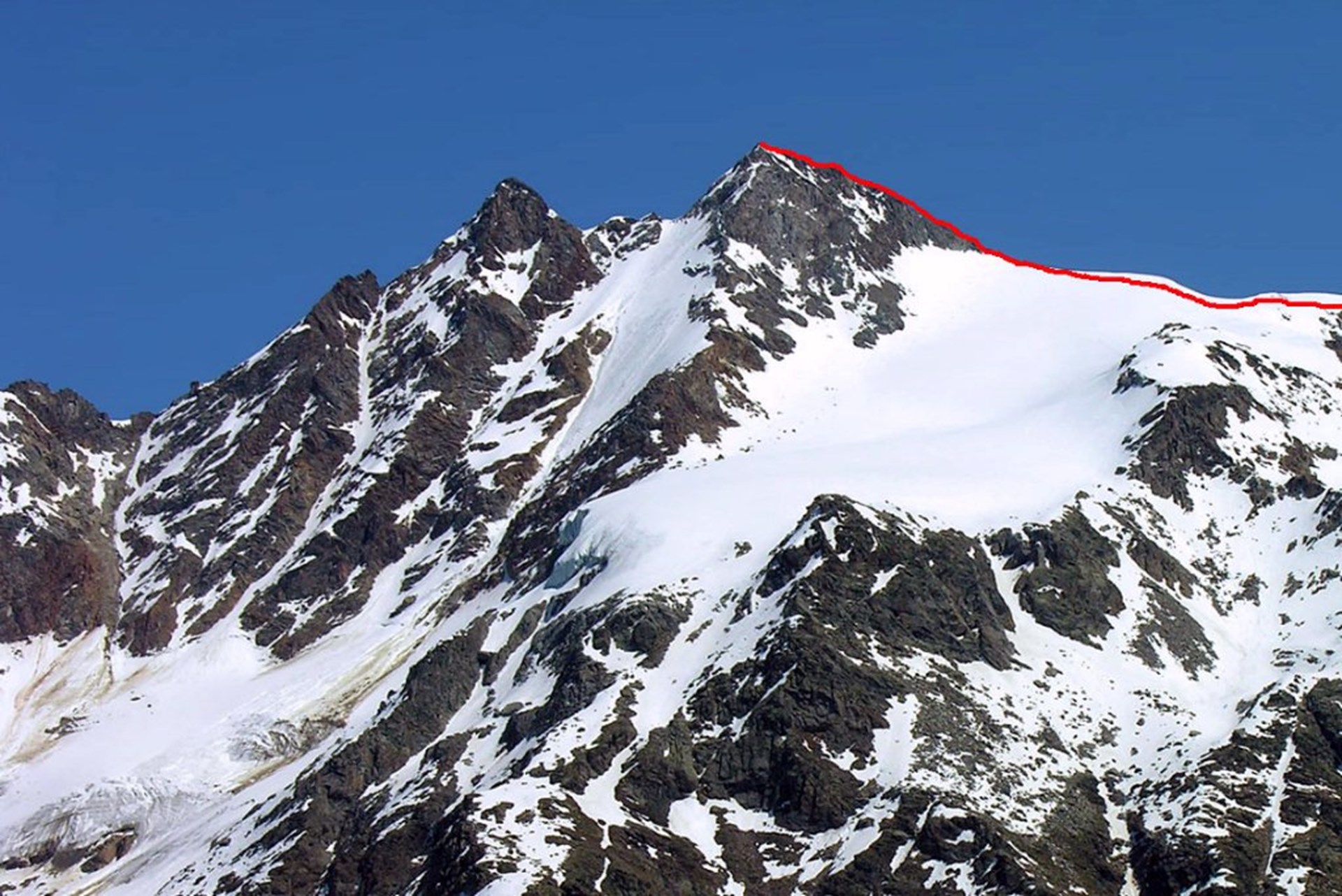 Desde el vivac, entrar en el glaciar de Coupé Money, que hay que recorrer hacia el este, en dirección al paso del mismo nombre (prestar atención a las brechas). Aquí, hacia la izquierda, comienza la cresta sur de la Punta Patrí. Inmediatamente después, sortear hacia la izquierda algunos torreones de roca poco segura y, a través de los detritos, llegar al ala de 3507 metros de altitud. Continuar en llano prestando atención a las cornisas de la ladera Valeille hasta llegar a la última parte de la cresta de grandes bloques apelotonados que lleva a la cima de la Punta Meridionale.