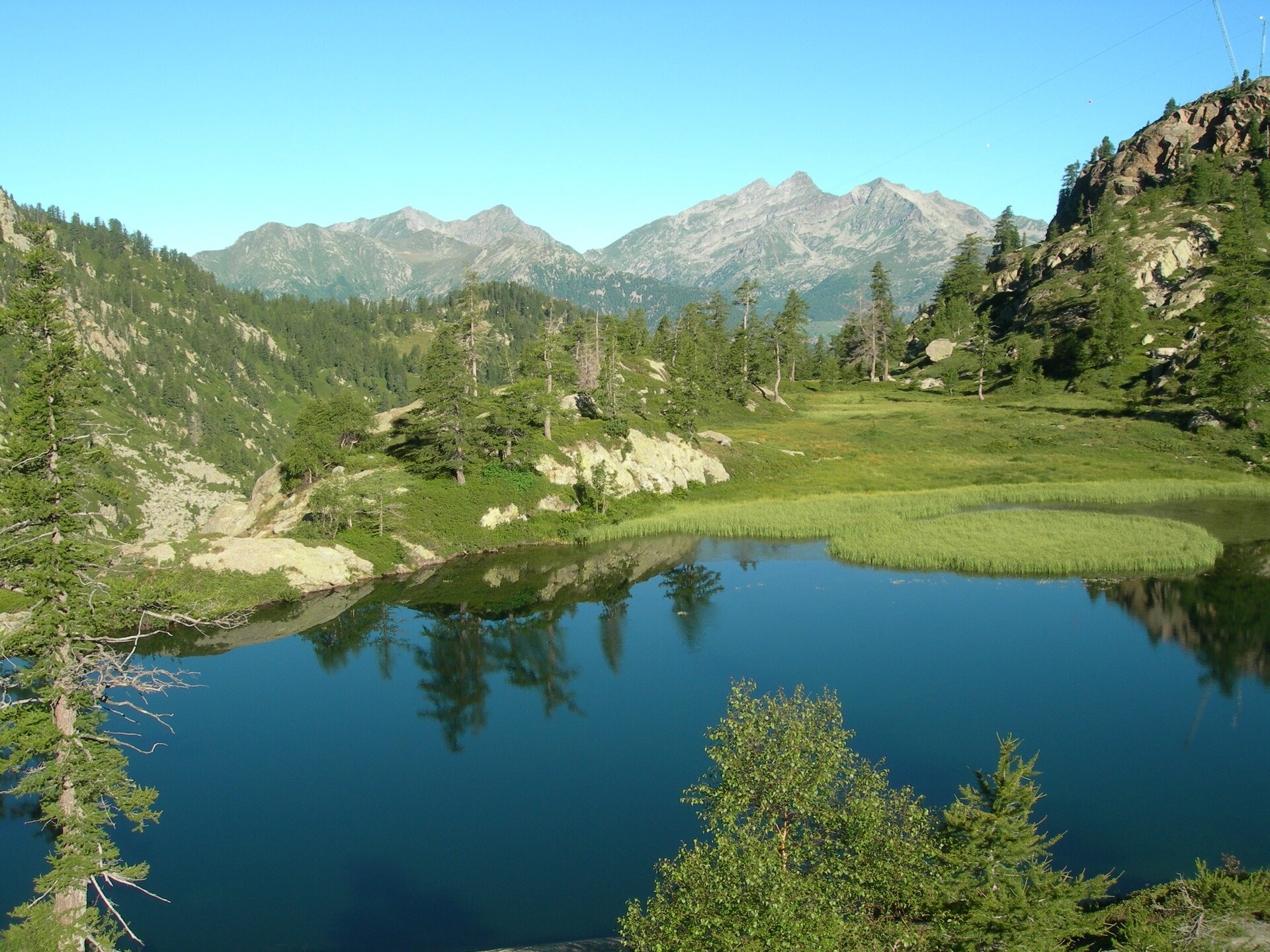 Se avanza en línea recta por la ladera boscosa hasta bordear el Torrente Pacoulla. Después de unas curvas, se supera el desnivel del sendero, que cruza el puente y pasa a ser más llano hasta los prados de la alzada de Mattà (1677 m). Allí comienza el bonito sendero empedrado que entra en la reserva natural del Monte Mars. Se sube con una bonita vista de la cuenca del lago del Vargno, y después del pedregal del escalón glacial se llega a la estupenda cuenca de los lagos, entre ellos Lé Lounc y Lé Barma (2020 m). Por último, después de las últimas curvas sobre terreno detrítico, se llega al paso.