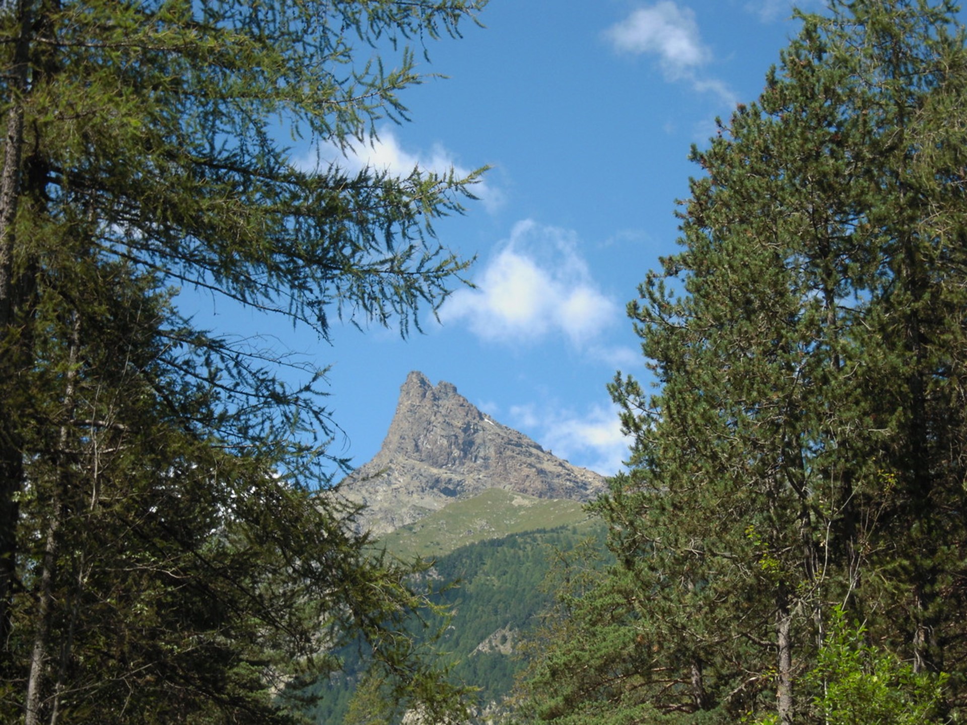 Una montaña con el perfil característico del Mont Avic (3006 metros) no deja de llamar la atención; una montaña emblema del parque del mismo nombre, área natural protegida que se extiende por los territorios de Champdepraz y Champorcher.
