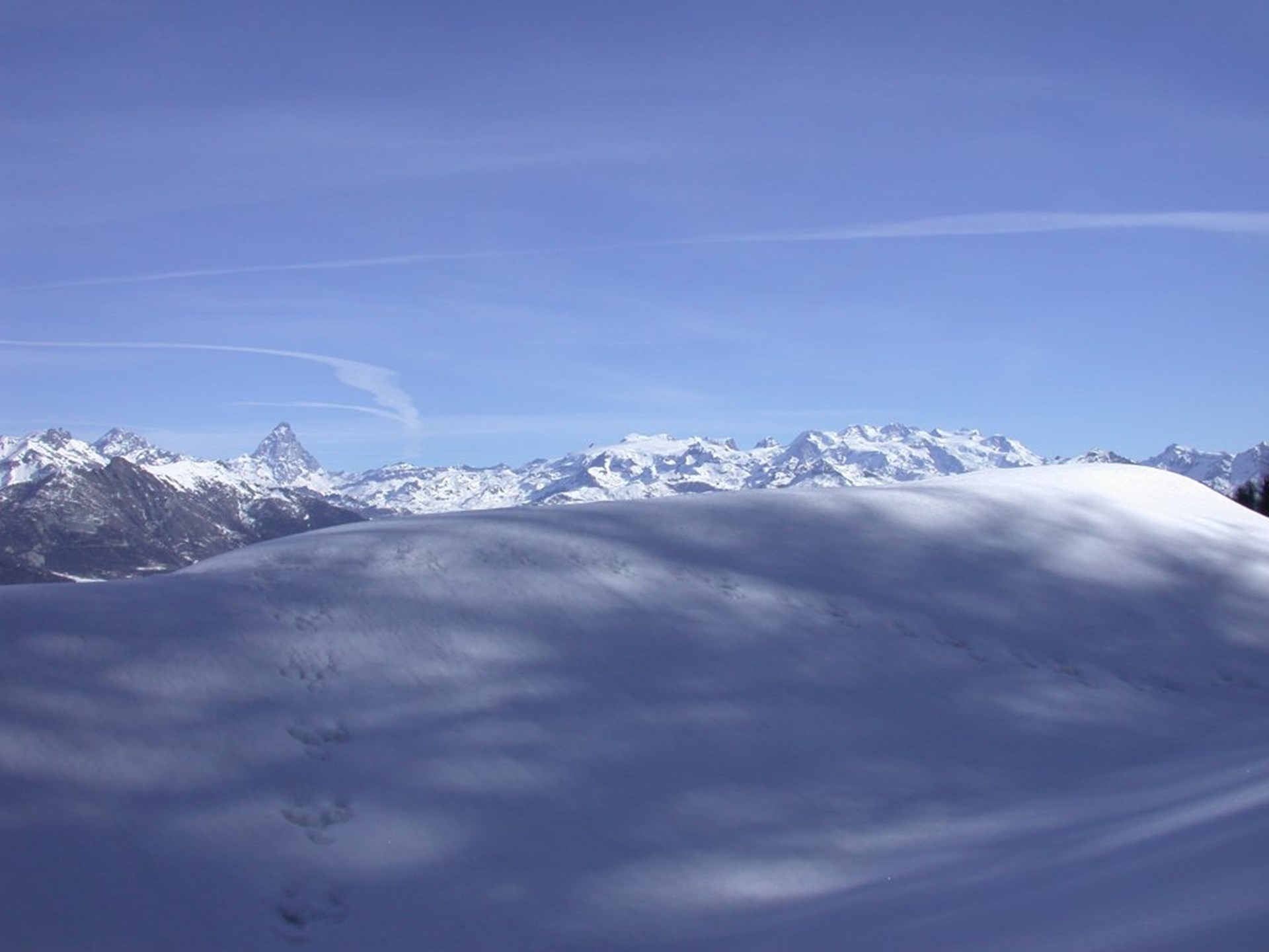 Desde Druges Hautes, encaminarse hacia las casas del pueblo: desde aquí arranca un trazado (a menudo batido por trineos a motor) que se adentra en los bosques. Sortear los caseríos por la derecha y continuar hasta encontrar la señal de prohibición de tráfico de la carretera rural que lleva a las alzadas de Fontaine Froide. Subir por el bosque de alerces y abetos dejando atrás un primer tramo bastante escarpado; después, un poco más adelante, el recorrido se vuelve ligeramente más plano; tras dejar atrás una curva, se llega a un pequeño chalé de madera. La subida continúa por un largo tramo rectilíneo que lleva bajo los pastos de Fontaine Froide. Con dos amplias curvas, la carretera llega a la altura de los caseríos: aquí es obligada una parada, puesto que la vista del Cervino y de todo el grupo del Monte Rosa es, verdaderamente, inolvidable.