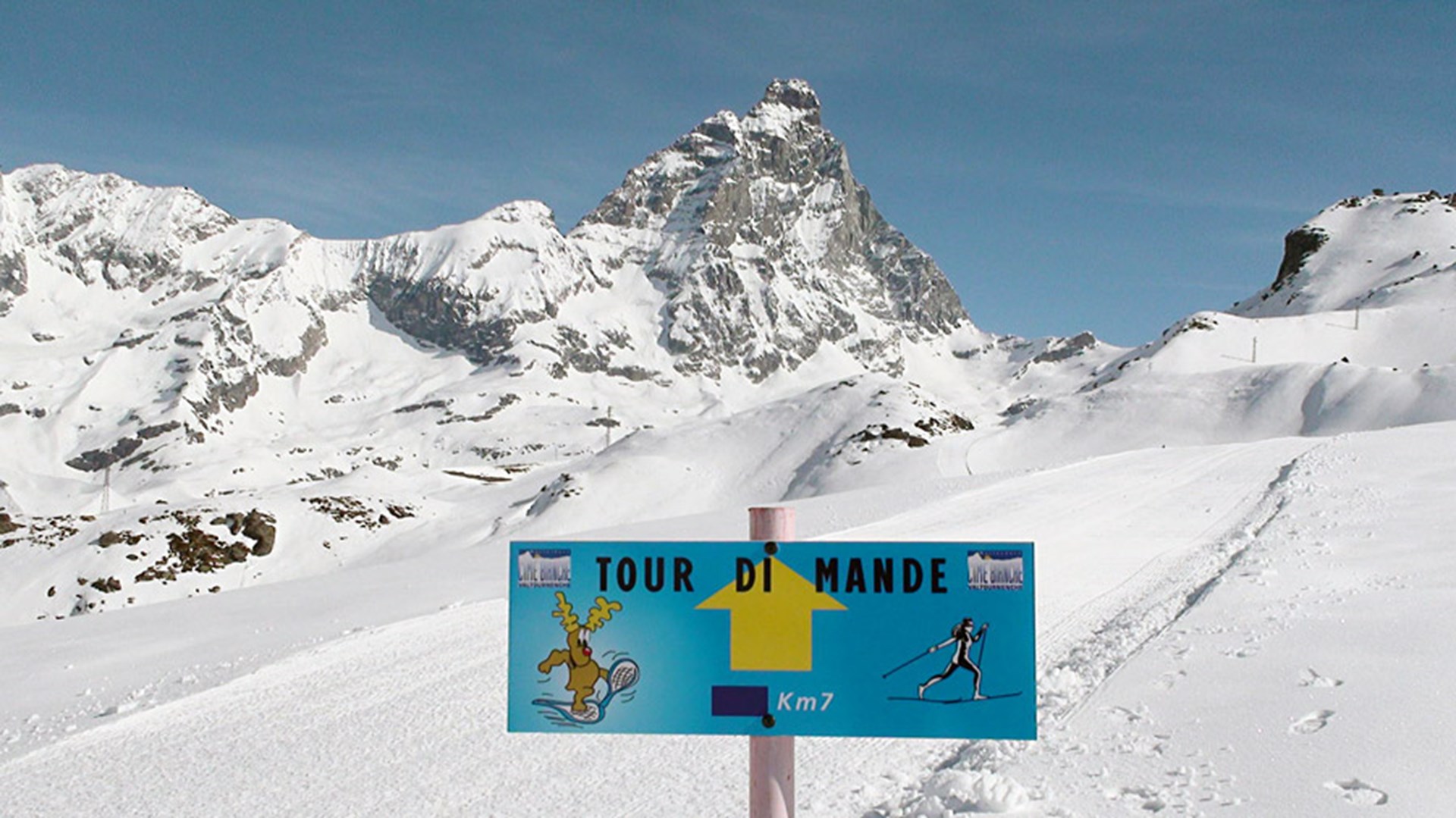 The free excursion piste « Tour di Mande », not controlled, bordered and arranged, leaves from the arrival station of the Valtournenche-Salette cable car (2.281 m). It can be covered on foot or with snow rackets. There are loops of 4, 5 and 7 km in front of the enchanting panorama of the Grandes Murailles.