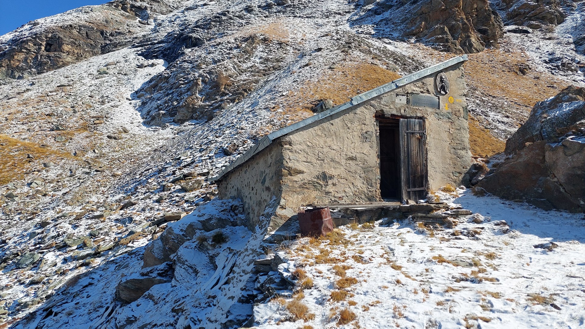 Acceso: estacione el coche antes del centro del pueblo de Valgrisenche y continúe a la izquierda hasta la área de pic-nic Plan Moulin. Desde allí, siga el camino de tierra hasta un pequeño puente de madera donde comienza el sendero n.º 6 hacia Becca dei Quattro Denti. Continúe adentrándose en el bosque y luego por las empinadas laderas que conducen al paso donde se encuentra el vivac Testafochi, un antiguo refugio militar de finales del siglo XIX.