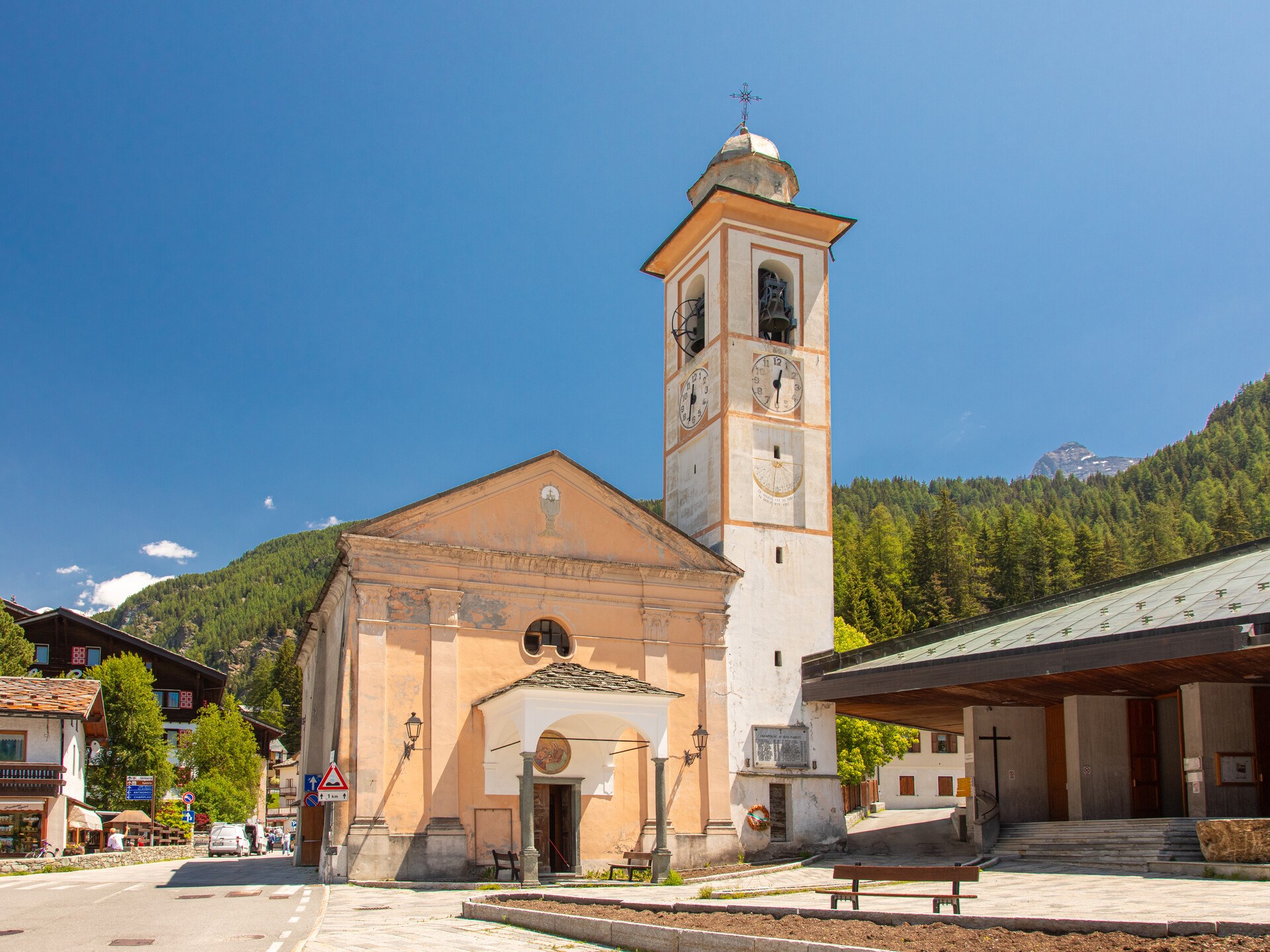 En la plaza inmediatamente después del puente hay dos iglesias yuxtapuestas, ambas dedicadas a Santa Ana. La más antigua existía ya en 1659, pero fue reconstruida y dotada de un campanario en 1715. En 1770 se fundó allí una escuela, con la obligación de enseñar latín hasta tercer grado. Se clausuró en 1821 por su estado miserable, pero resurgió en 1840 por obra del párroco de Ayas, D’Andrès. En 1946 se convirtió en parroquia independiente de Antagnod. La iglesia nueva fue consagrada por el obispo de Aosta, Monseñor Lari, el 30 de agosto de 1970.