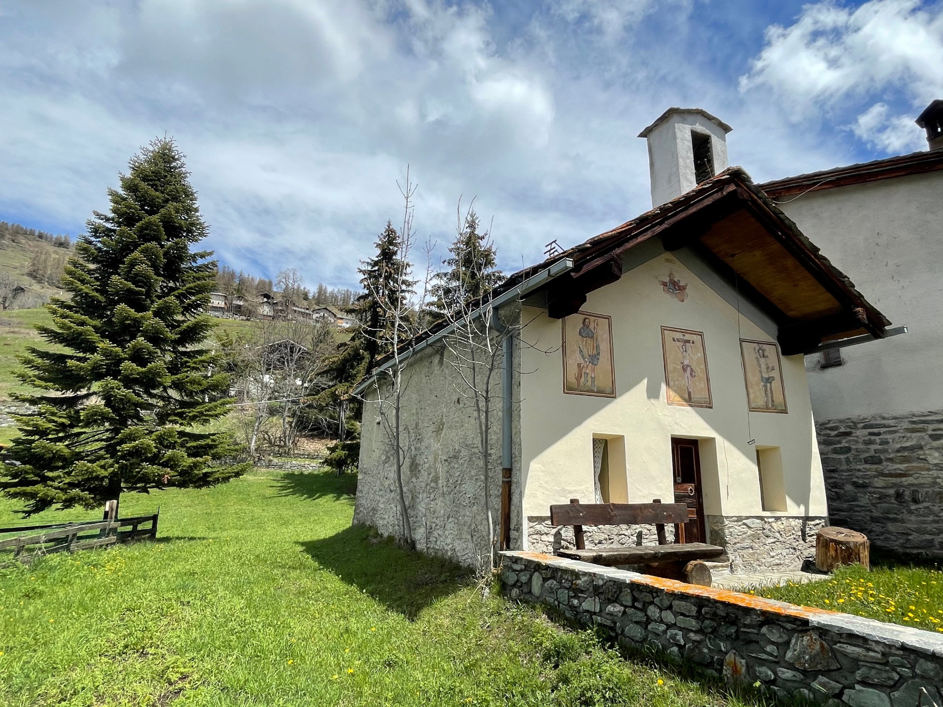 Dedicada a San Roque, es la más antigua del pueblo. Según documentos notariales se fundó el 7 de junio de 1672 por iniciativa de Michele Messelod; se trata de una construcción de dimensiones relativamente contenidas.