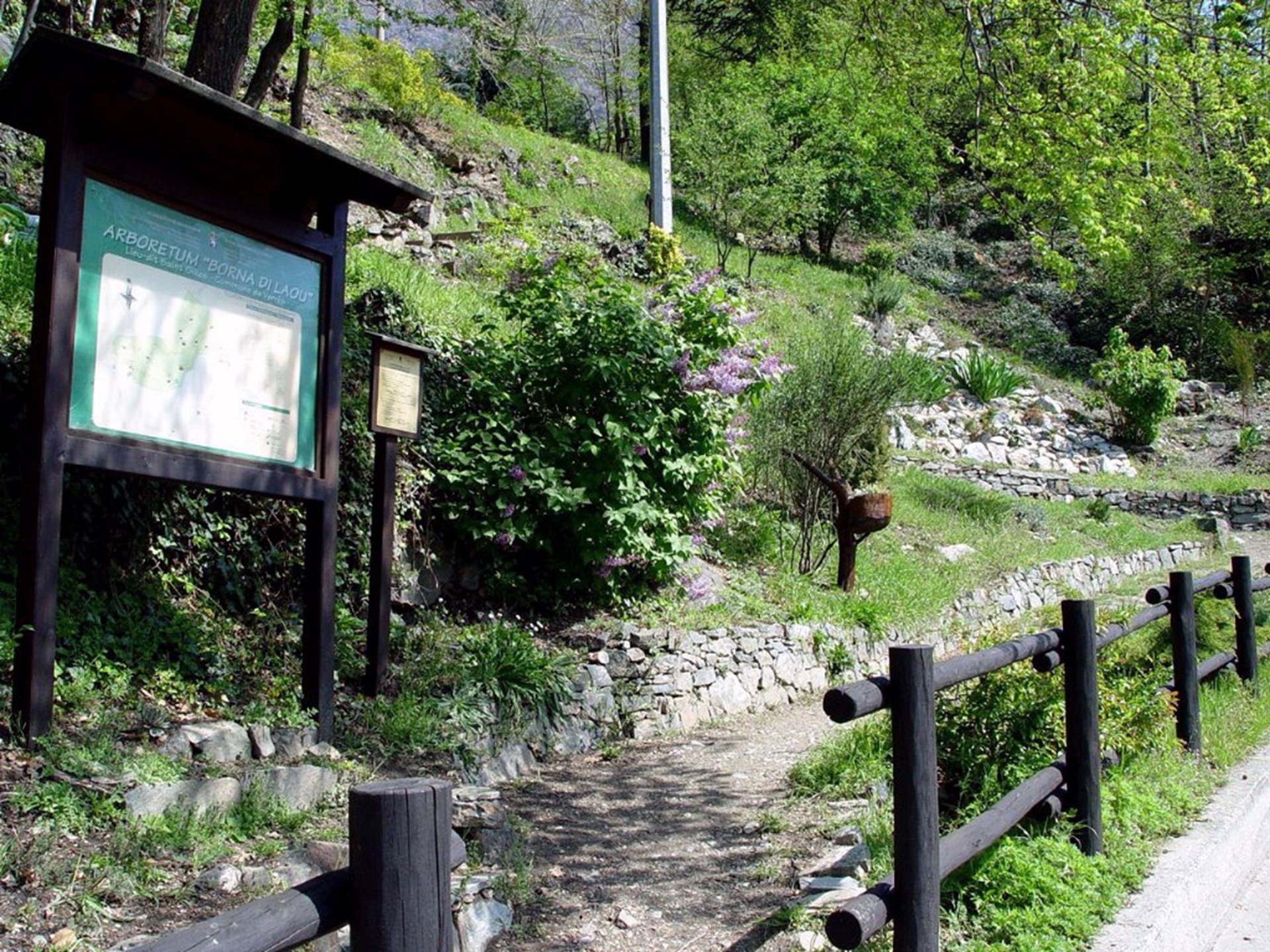 La variada vegetación puede reconocerse gracias a los carteles que indican su nombre botánico, además del los nombres en italiano y francés. Se encuentran, además de las especies autóctonas típicas de este ambiente xerófilo, como el roble pubescente, el cornejo, el espino albar, el olmo, el almez, la robinia, etc., especies más exigentes como el cerezo, el fresno, el castaño, el peral, el tilo, además de algunas manifestaciones botánicas que son auténticas rarezas espontáneas en este tipo de contexto: nispolero, rusco, laurel y bonetero.