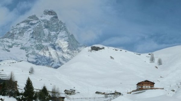 Hacia el oeste se puede apreciar la cadena de las Grandes Murailles; al norte, imponente, la gran punta: el Monte Cervino.