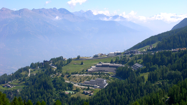 Los principales edificios están dispuestos en cadena sobre una carretera cubierta, que protege el tráfico de la nieve y del hielo. Los hoteles emergen por el terreno, mientras que la mayor parte de las viviendas privadas son entreplantas en cascada sobre la ladera de poniente hacia el panorama del Monte Blanco. El complejo de construcción se adapta y se modela en función de la orografía de la localidad y sus colores se asimilan a los colores naturales. La tipología de los apartamentos recobran los conceptos de desarrollo de Le Corbusier en sus unidades habitacionales: viviendas próximas dispuestas en serie, de tipo estudio o dúplex, con largos pasillos ciegos y amplias vidrieras abiertas al panorama.