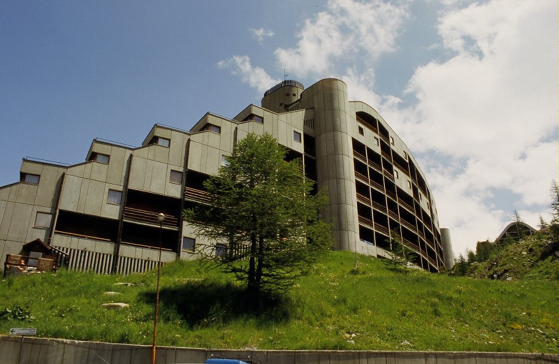 Des ensembles de bâtiments ont été construits dans les années 60 et 70, comme le Cielo Alto (Haut Ciel) ou le Complexe Giomein. Le Giomein est un bâtiment continu, qui se développe en forme de chapelet, en partant de l’hôtel qui constitue le cœur de l’ensemble. Il est relié à l’ensemble des résidences collectives et à celui des magasins. Tout le complexe présente un développement vertical, en imitant les formes anguleuses des tuyaux d’orgue. Les matériaux utilisés sont le cuivre pour le toit, la pierre ou bien les planches horizontales de mélèzes pour les murs. La station de ski-total du Cielo Alto est divisée en trois noyaux distincts. Le complexe est composé d’une série de bâtiments construits sur les bas-côtés d’une route, qui monte à une altitude plus élevée. L’austère bloc hôtelier situé plus bas est suivi d’une intéressante structure concave, d’une autre avec un toit au profil ondulé et enfin de deux blocs presque cylindriques. Les principaux matériaux utilisés sont au nombre de deux : le béton apparent pour les parties exposées aux intempéries et le bois pour les parties protégées.