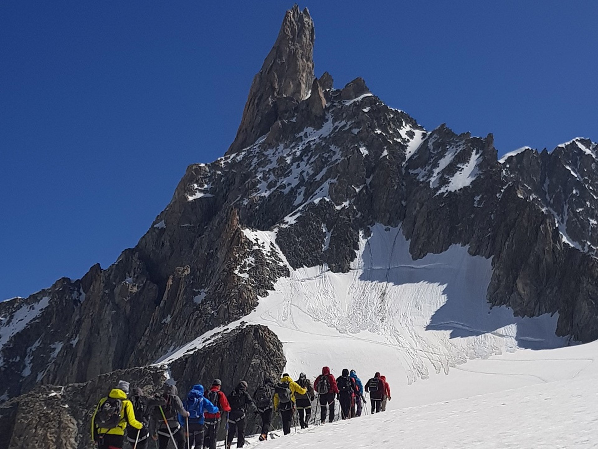 Cette excursion vous permettra de découvrir le cœur du Mont-Blanc, avec ses panoramas et sa majesté, vous montrant un nouveau type de randonnée, en haute montagne , car elle se déroule sur des glaciers faciles, où les premiers rudiments de l’alpinisme seront enseignés: la progression en cordée sur le glacier enneigé avec et sans crampons.