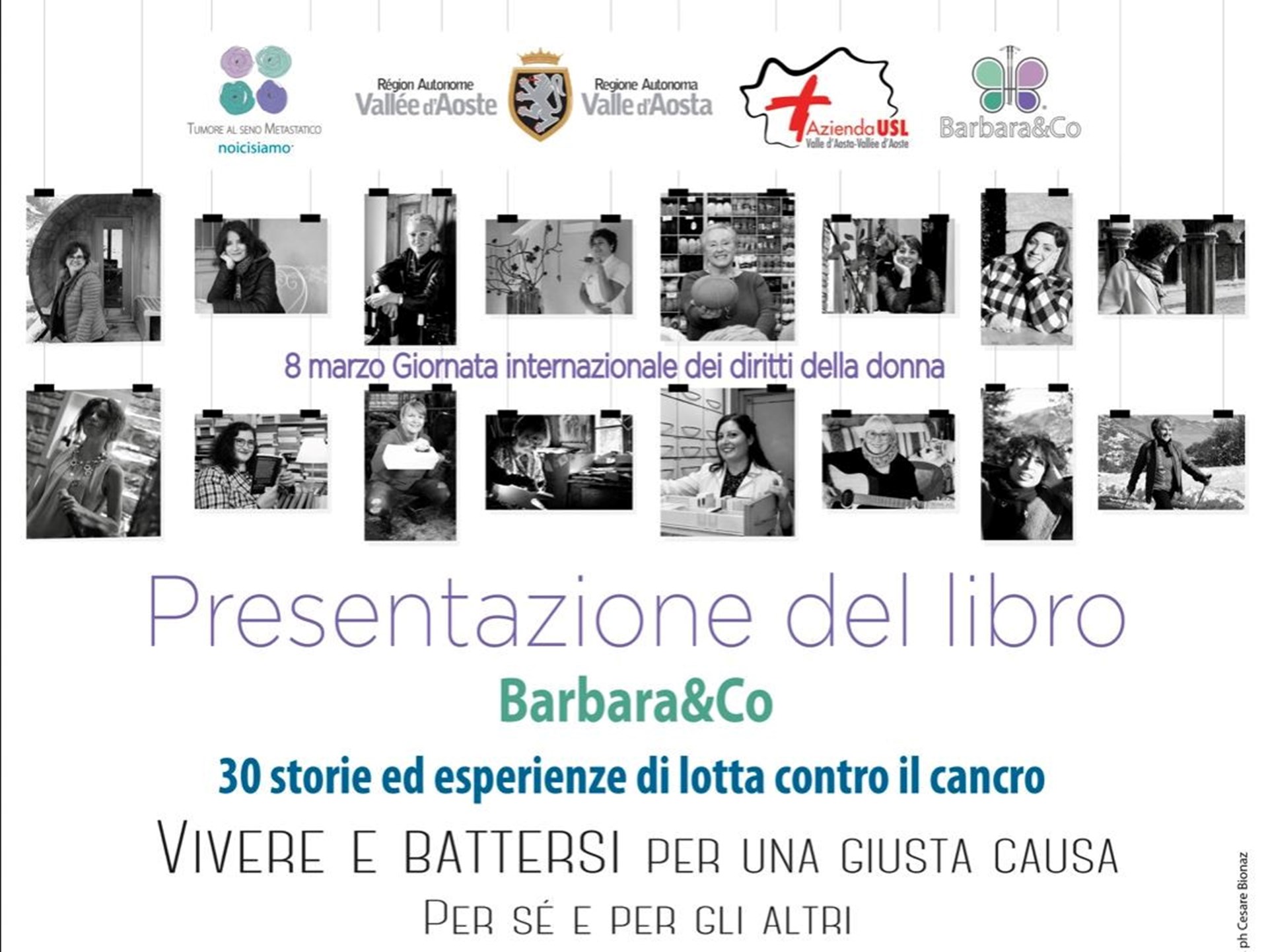 In occasione della Giornata internazionale della donna viene presentato il libro corale Barbara & Co. Vivere e battersi per una giusta causa. Per sé e gli altri: trenta e più storie di donne alle prese con il cancro come Barbara Biasia Gex che, come lei, raccontano le loro esperienze e spiegano le necessità dei malati, a cominciare dal delicatissimo capitolo dell’umanità delle cure.