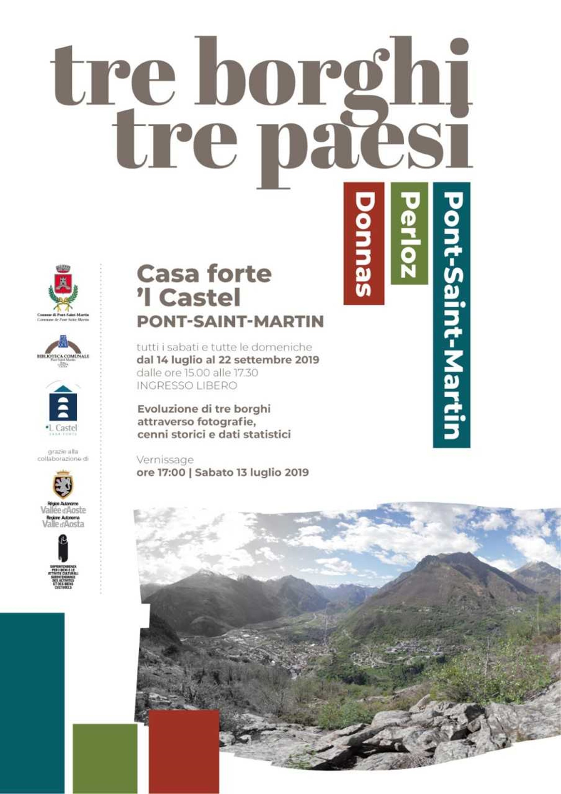 Il Comune e la Commissione di gestione della Biblioteca di Pont-Saint-Martin, con la collaborazione della Soprintendenza ai beni e alle attività culturali, organizzano l’esposizione curata da Luciana Pramotton, si avvale delle fotografie di Enrico Peyrot realizzate in occasione della mostra Bourgs accanto a nuovi scatti realizzati nel corso della primavera 2019 e vuole mettere a confronto tre realtà della bassa valle legate da infiniti rapporti che condividono storia, vita sociale e territorio. Un omaggio a questa area e ai suoi abitanti. tre dei dodici borghi le cui fotografie storiche e contemporanee comparvero in mostra a Ussel, tornano ora alla ribalta nelle antiche stanze della Casa Forte dei Signori di Pont-Saint-Martin, ʼl Castel.