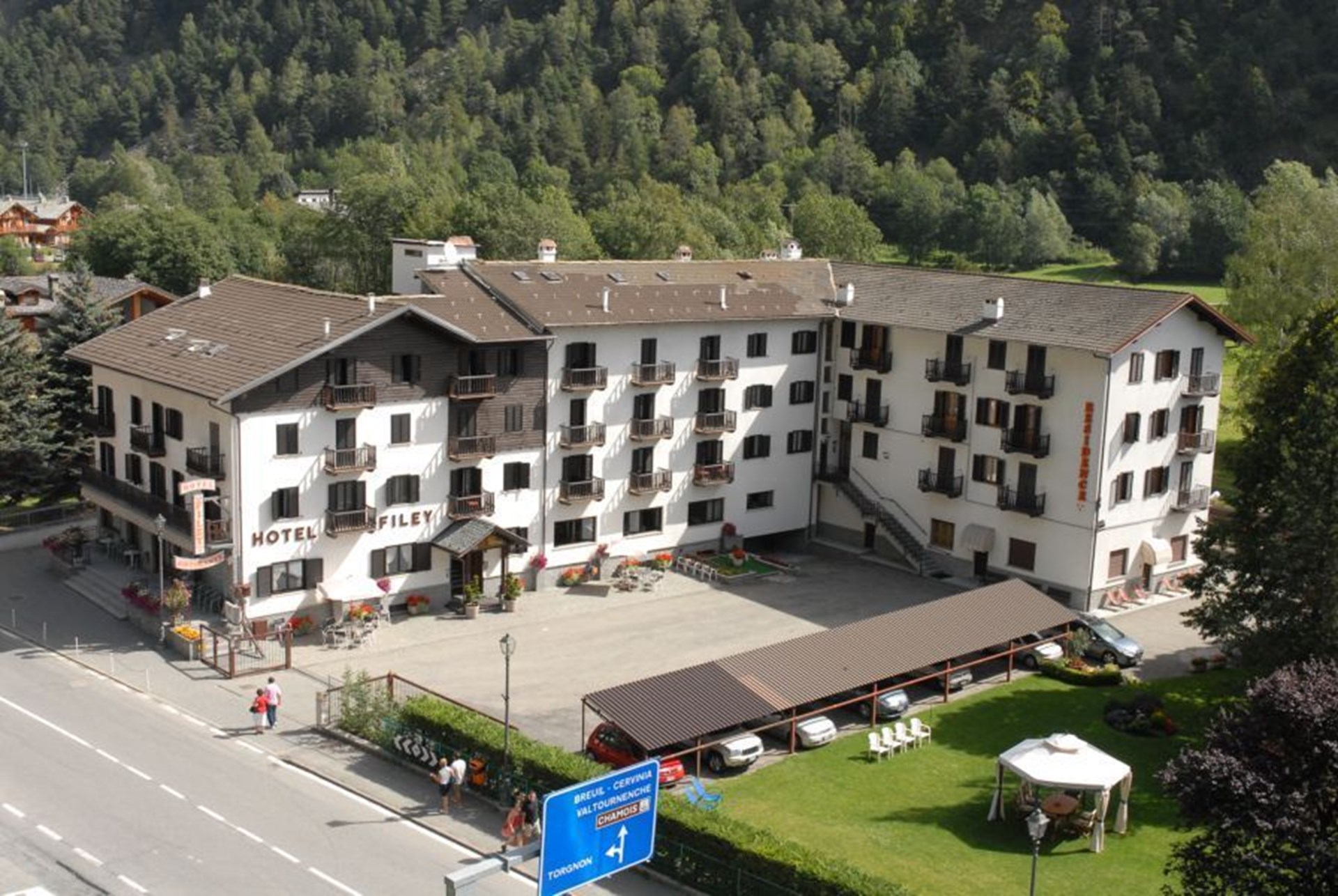 L'hôtel se dresse sur le plateau d'Antey-Saint-André dans la Localité Filey d'où l'on peut admirer le Mont Cervin dans toute sa splendeur.