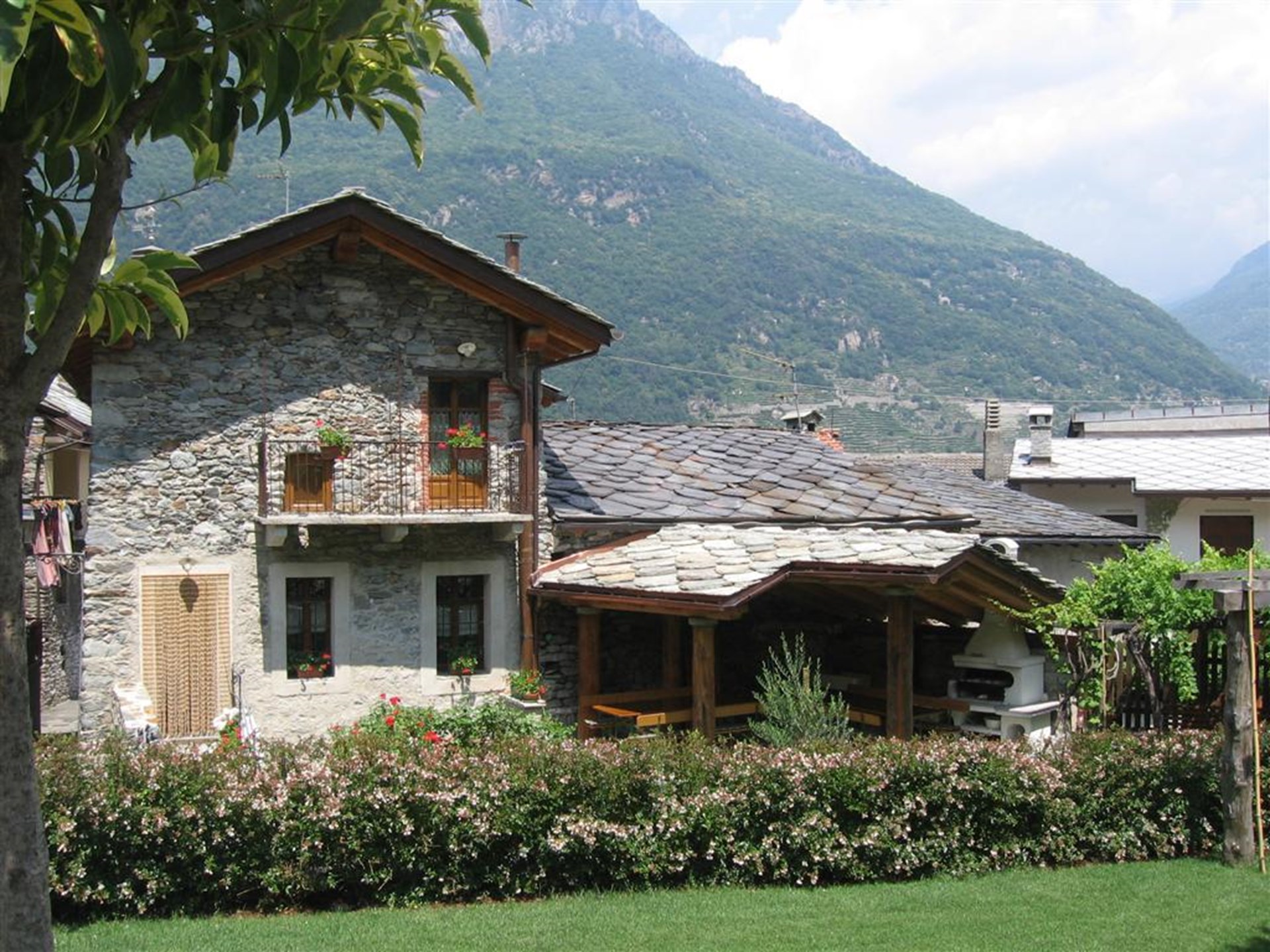 A l’extérieur se trouve un joli jardin avec une treille qui vous invite à contempler la nature. En été et sur demande, vous pouvez concilier la fraîcheur du soir avec des saveurs typiquement valdôtaines en dînant à la belle étoile de grillades accompagnées d’une sélection de vins locaux. La lueur des bougies et des lampes crée une ambiance accueillante et festive.